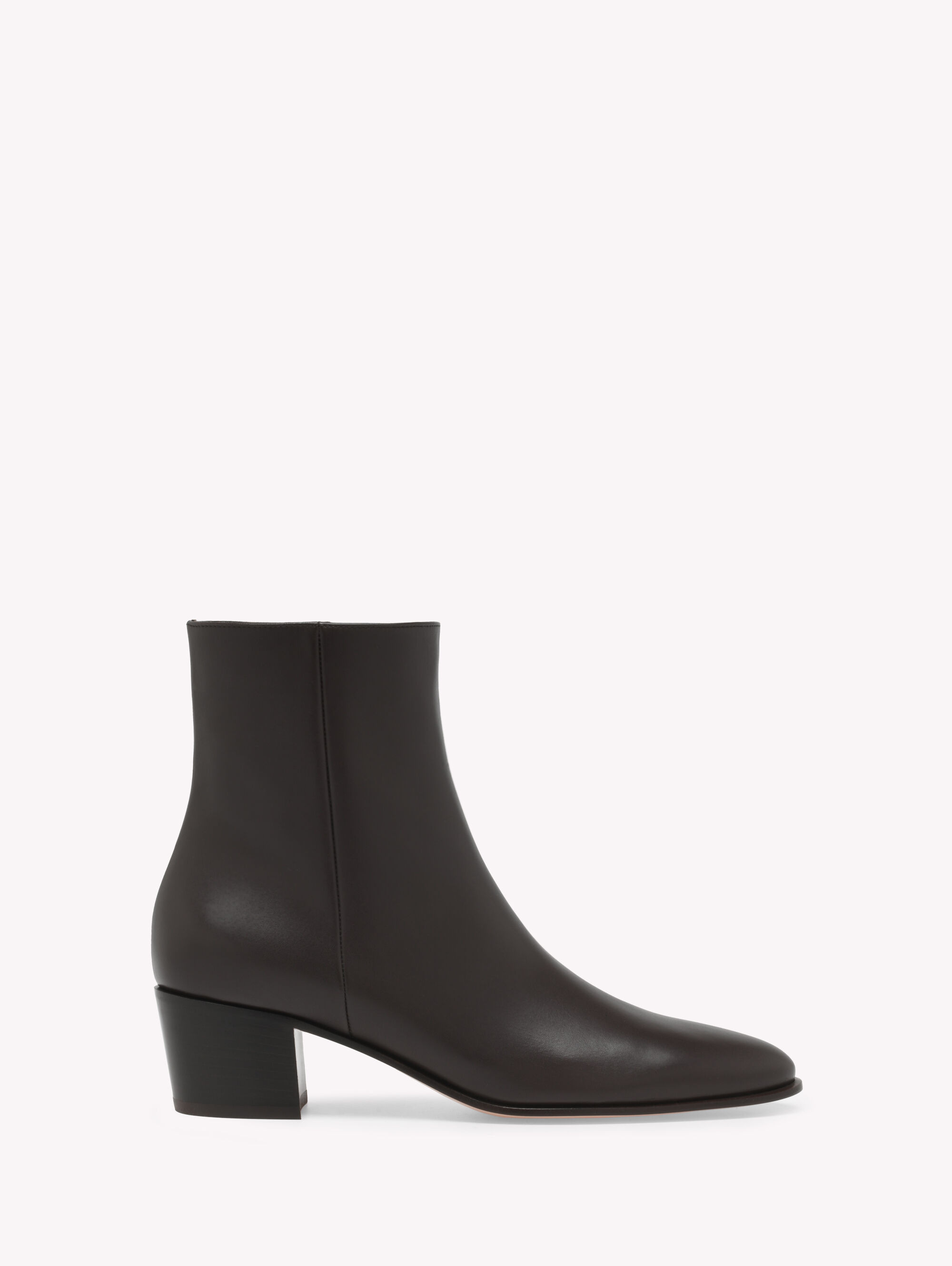 Crafted from leather, Spencer is an almond-toe fitted bootie with a 45mm stack leather heel. The design is completed with an inner tonal zipper. Handmade in Italy. - Composition: 100% CALF - Heel height: 1.8 inches / 45 mm - Model Code: G72977.45CUO Item ID: G72977.45CUO.VGIMOKA