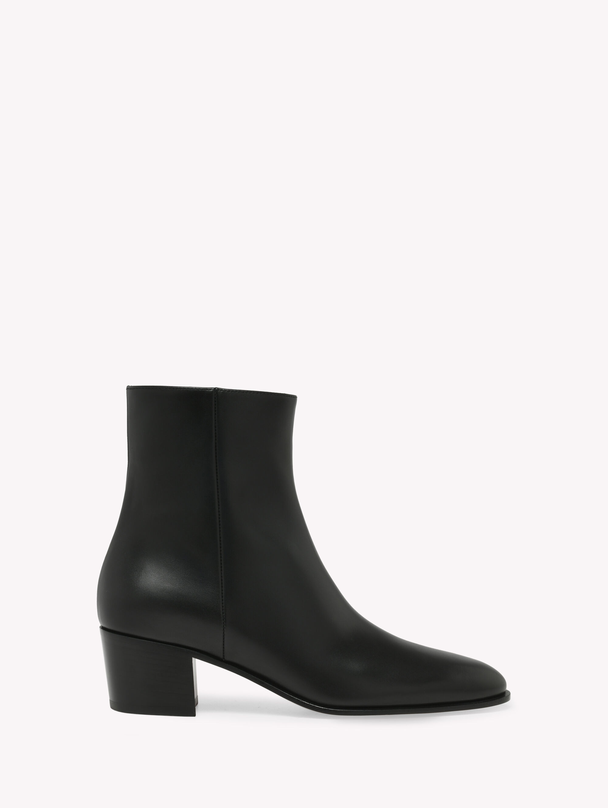 Crafted from leather, Spencer is an almond-toe fitted bootie with a 45mm stack leather heel. The design is completed with an inner tonal zipper. Handmade in Italy. - Composition: 100% CALF - Heel Height: 1.8 inches / 45 mm - Model Code: G72977.45CUO Item ID: G72977.45CUO.VGINERO