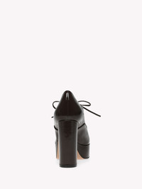 Crafted from Nuit, the Maison's distinctive leather with a glossy finish, Vicky is a round toe lace-up Oxford style with a 30mm platform and a 100mm chunky heel. Handmade in Italy. - Composition: 100% NAPPA - Heel Height: 2.8 inches / 70 mm - Model Code: G25323.70RIC Item ID: G25323.70RIC.NUIBOUR
