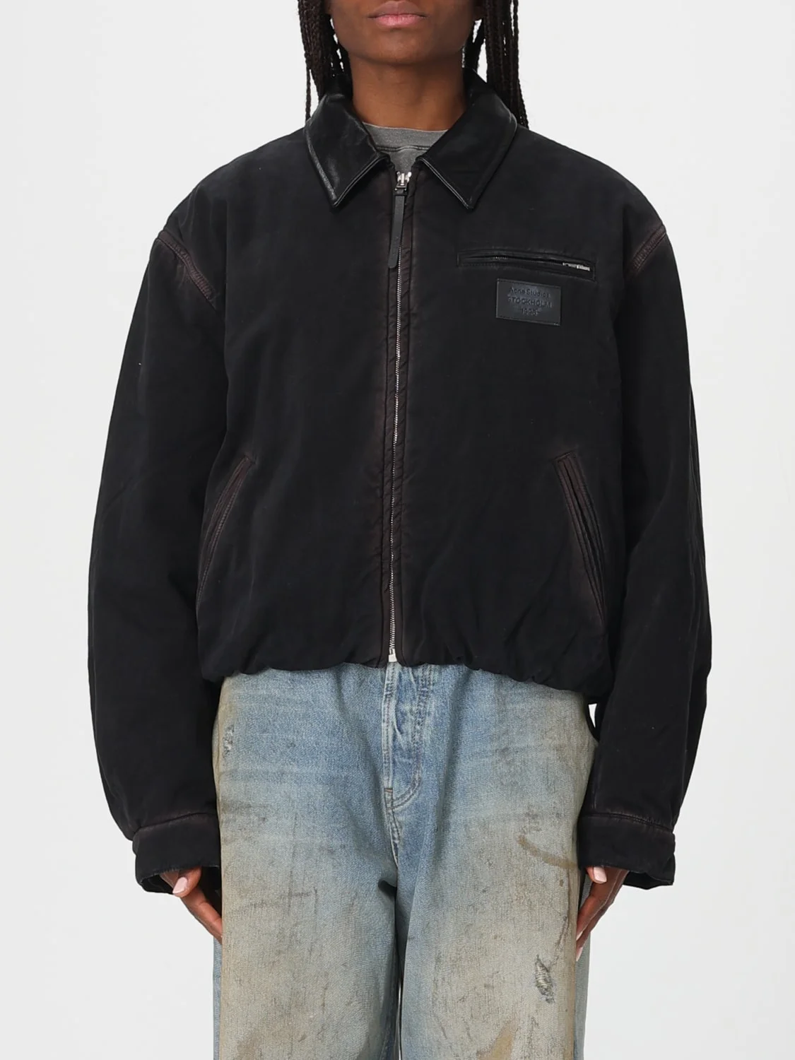 DESCRIPTION - Style: Sporty, Urban-street - Occasion: Gym, Morning - Neck: Classic - Shoulders: Relaxed - Sleeves: Long - Closure: With zip - Pockets: Slit pocket - Logo: With logo - Length: Short jackets - Materials: Cotton tweed - Pattern: Plain-colored DETAILS AND CARE Composition 100% COTTON Wash and Care Take to a specialized dry cleaner SIZE AND FIT Sizes not available Size and fit Cropped fita , Relaxed fit Designer code: A90638 ADM Giglio Code: H91282 Designer: Acne Studios Collection: Acne Studios Woman Category: Clothing Acne Studios