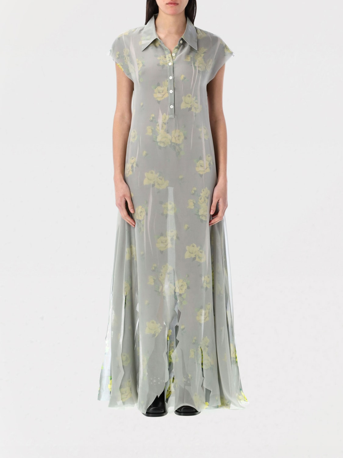 DESCRIPTION - Style: Casual - Model: Chemisier - Neck: Classic - Shoulders: Regular - Closure: With 5-button placket - Bottom: With straight hemline - Length: Long dresses - Sleeves: undefined - Materials: Chiffon - Pattern: Floral DETAILS AND CARE Composition 100% polyester SIZE AND FIT Sizes not available Size and fit Regular fit Designer code: A20813 BYA Giglio Code: G71119 Designer: Acne Studios Collection: Acne Studios Woman Category: Clothing Acne Studios
