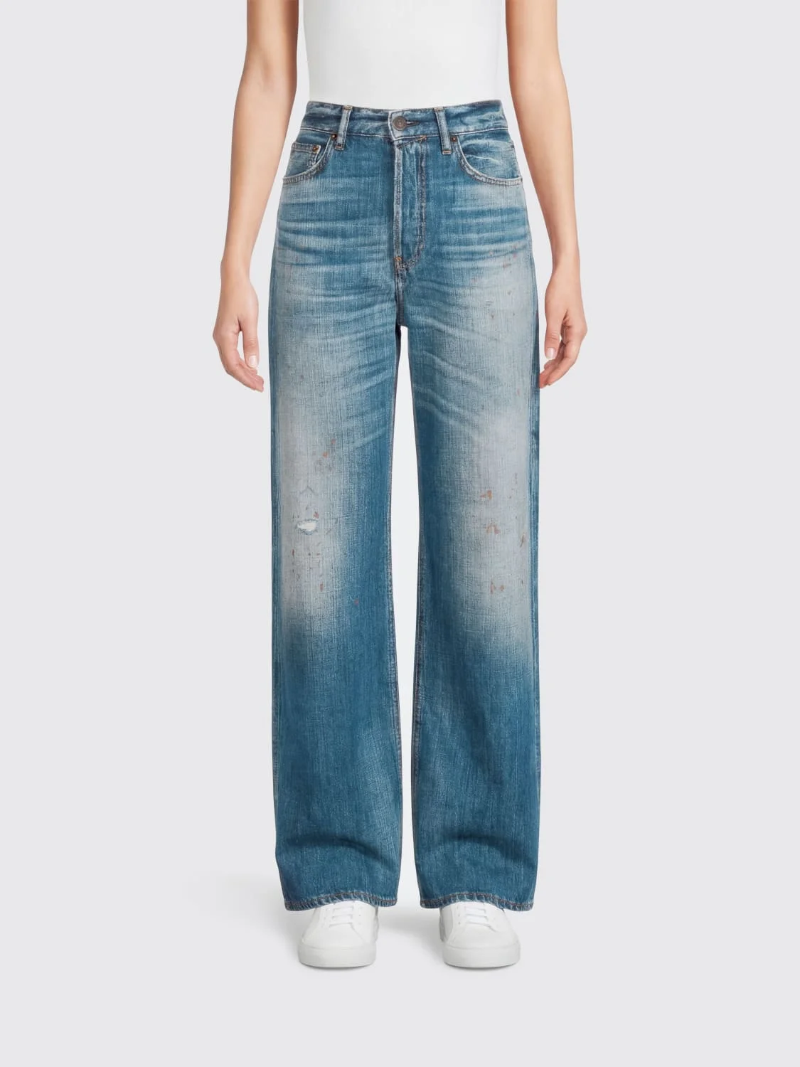 DESCRIPTION - Style: Casual, Urban-street - Pockets: 5-pocket - Waist: High waist - Bottom: With straight hemline - Closure: With button and zip - Materials: Cotton denim - Pattern: Plain-colored DETAILS AND CARE Composition Shell: 100% Organic cotton, Patch: 100% Cow l SIZE AND FIT Sizes not available Size and fit Straight leg Designer code: A00577 863 Giglio Code: I08371 Designer: Acne Studios Collection: Clothing Acne Studios Category: Clothing > Jeans