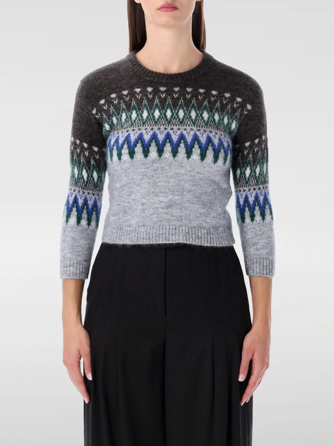 DESCRIPTION - Style: Classic - Model: Crewneck - Neckline: Crewneck - Shoulders: Regular - Sleeves: Long - Cuffs: Ribbed - Bottom: With ribbed edges - Materials: Mohair - Pattern: Jacquard DETAILS AND CARE Composition 34% responsible mohair 34% responsible wool 2 SIZE AND FIT Sizes not available Size and fit Slim fit Designer code: A60611 BQ9 Giglio Code: H65393 Designer: Acne Studios Collection: Acne Studios Woman Category: Clothing Acne Studios