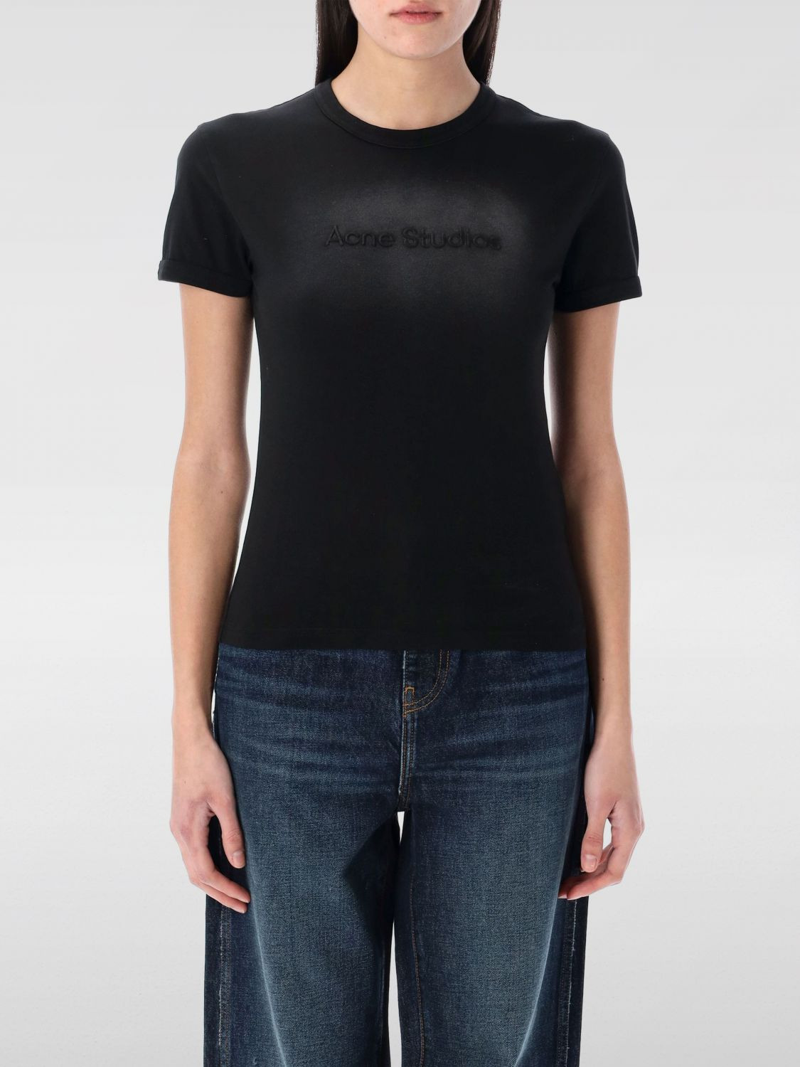 DESCRIPTION - Style: Contemporary - Logo: Embroidered, Tone-on-tone - Model: Crewneck - Neckline: Crewneck - Shoulders: Regular - Sleeves: Short - Bottom: With straight hemline - Materials: Cotton - Pattern: Plain-colored, All-over logo DETAILS AND CARE Composition CO SIZE AND FIT Sizes not available Size and fit Slim fit Designer code: AL0457 BM0 Giglio Code: G50466 Designer: Acne Studios Collection: Acne Studios Woman Category: Clothing Acne Studios
