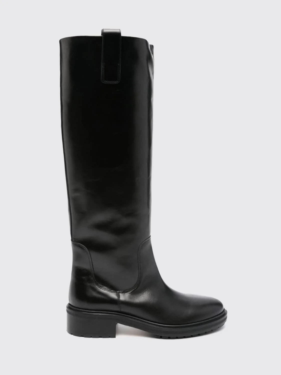 DESCRIPTION - Style: Minimal, Urban-street - Details: With back tab - Lining: Leather, With logo - Closure: Side closure with zip - Toe: Round - Shaft: Knee-high - Sole: Dented tread, Rubber - Heel: Low heel - Occasion: Morning - Materials: Smooth calfskin - Pattern: Plain-colored DETAILS AND CARE Composition 100% Calf Leather SIZE AND FIT Sizes not available Designer code: A11KBLAID45CH222 BLACK Giglio Code: H86790 Designer: Aeyde Collection: Aeyde Woman Category: Shoes Aeyde