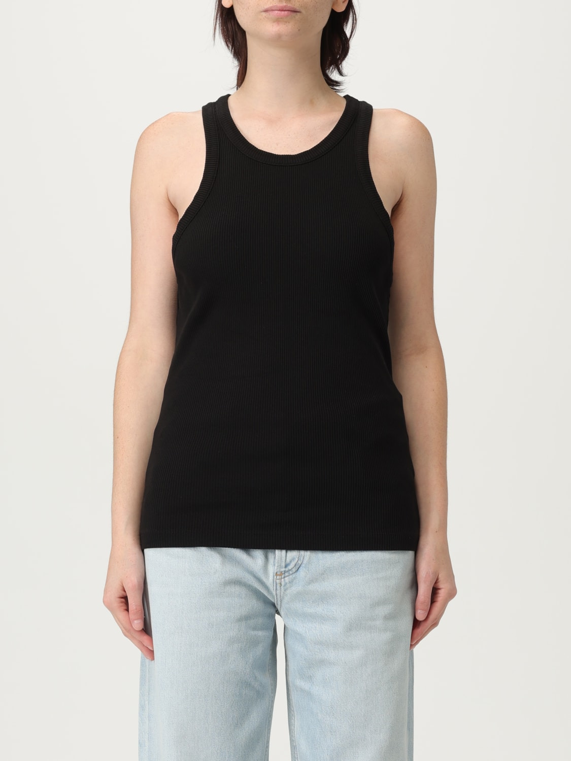 DESCRIPTION - Style: Casual - Neckline: U neckline - Shoulders: Regular - Bottom: With straight hemline - Sleeves: Off-the-shoulder - Materials: Cotton blend - Pattern: Plain-colored DETAILS AND CARE Composition 49% Lyocell, 49% Cotone organico, 2% Elastan SIZE AND FIT Sizes not available Size and fit Slim fit Designer code: A73561260 BLK Giglio Code: G63206 Designer: Agolde Collection: Agolde Woman Category: Clothing Agolde