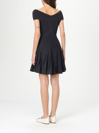 DESCRIPTION - Style: Elegant - Model: Pleated - Neckline: V neckline - Shoulders: Relaxed - Closure: With concealed zip - Bottom: With straight hemline - Length: Mini dresses - Occasion: Evening and party dresses - Sleeves: undefined - Materials: Virgin wool - Pattern: Plain-colored DETAILS AND CARE Composition Virgin wool 100% SIZE AND FIT Sizes not available Size and fit Regular fit Designer code: AA9R2527K010A 840 Giglio Code: G69272 Designer: Alaia Collection: Alaia Woman Category: Clothing Alaia