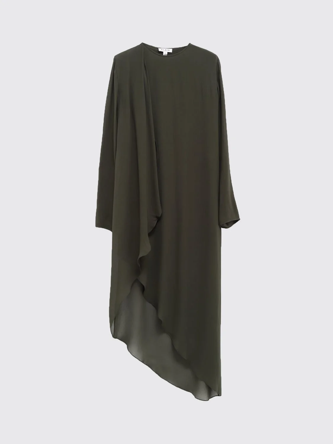 DESCRIPTION - Style: Minimal - Neckline: Crewneck - Shoulders: Regular - Bottom: With asymmetric hemline - Model: Asymmetric, Tunic - Length: Midi dresses - Occasion: Ceremony and cocktail dresses, Evening and party dresses - Sleeves: Long sleeve dresses - Materials: Viscose blend - Pattern: Plain-colored DETAILS AND CARE Composition 100% viscose SIZE AND FIT Sizes not available Size and fit Slim fit Designer code: AA9R2695T666B 643 Giglio Code: H14644 Designer: Alaia Collection: Clothing Alaia Category: Clothing > Dress