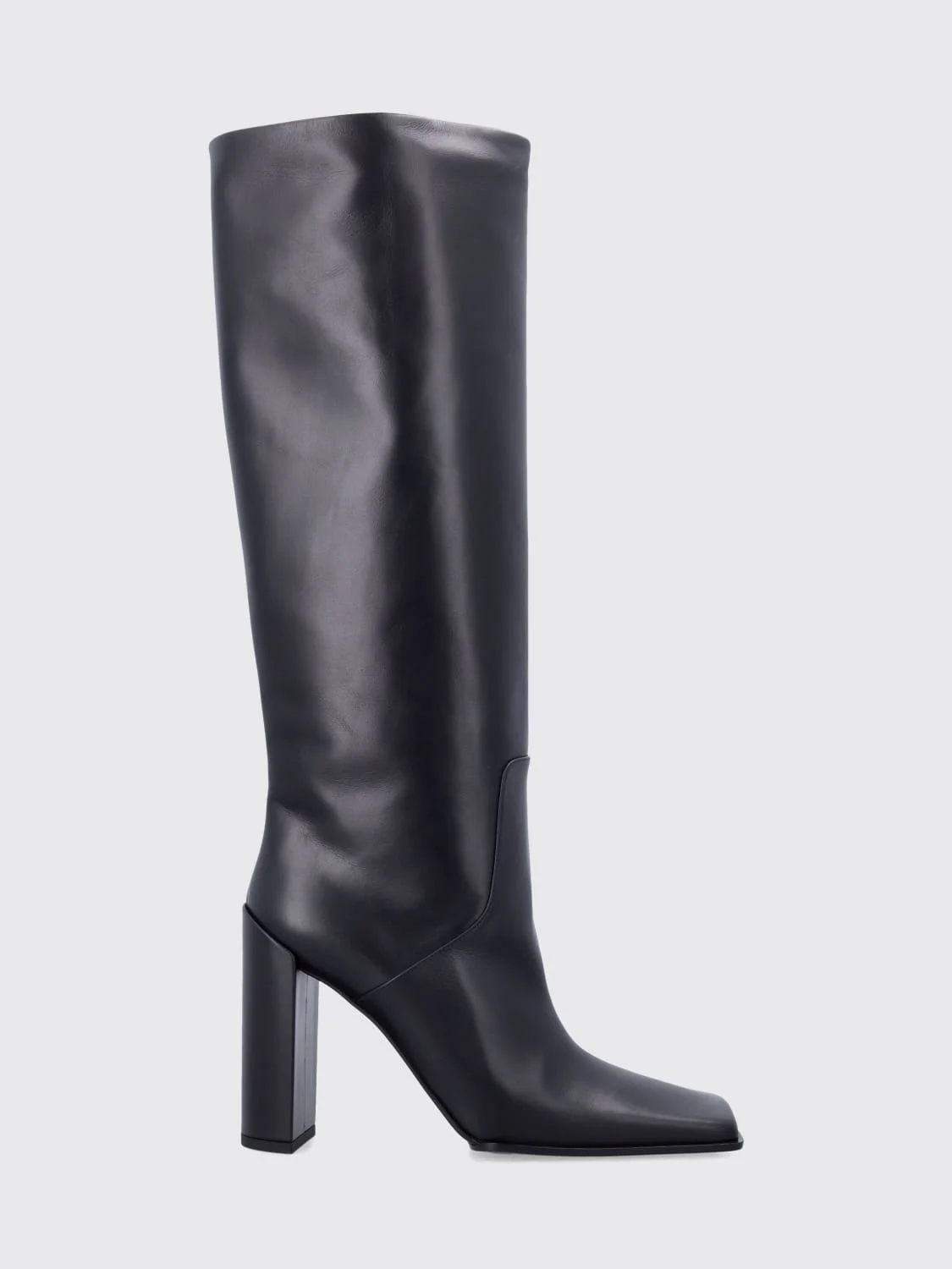 DESCRIPTION - Style: Minimal - Model: Slip on - Shaft: Knee-high - Sole: Leather - Occasion: Morning - Heel: Tacco alto quadrato - Materials: Smooth calfskin - Pattern: Plain-colored DETAILS AND CARE Composition 100% calf leather Sole 50% calf leather 50% r SIZE AND FIT Sizes Heel: 9 cm Designer code: AA3O2005I052 999 Giglio Code: H81837 Designer: Alaia Collection: Alaia Woman Category: Shoes Alaia