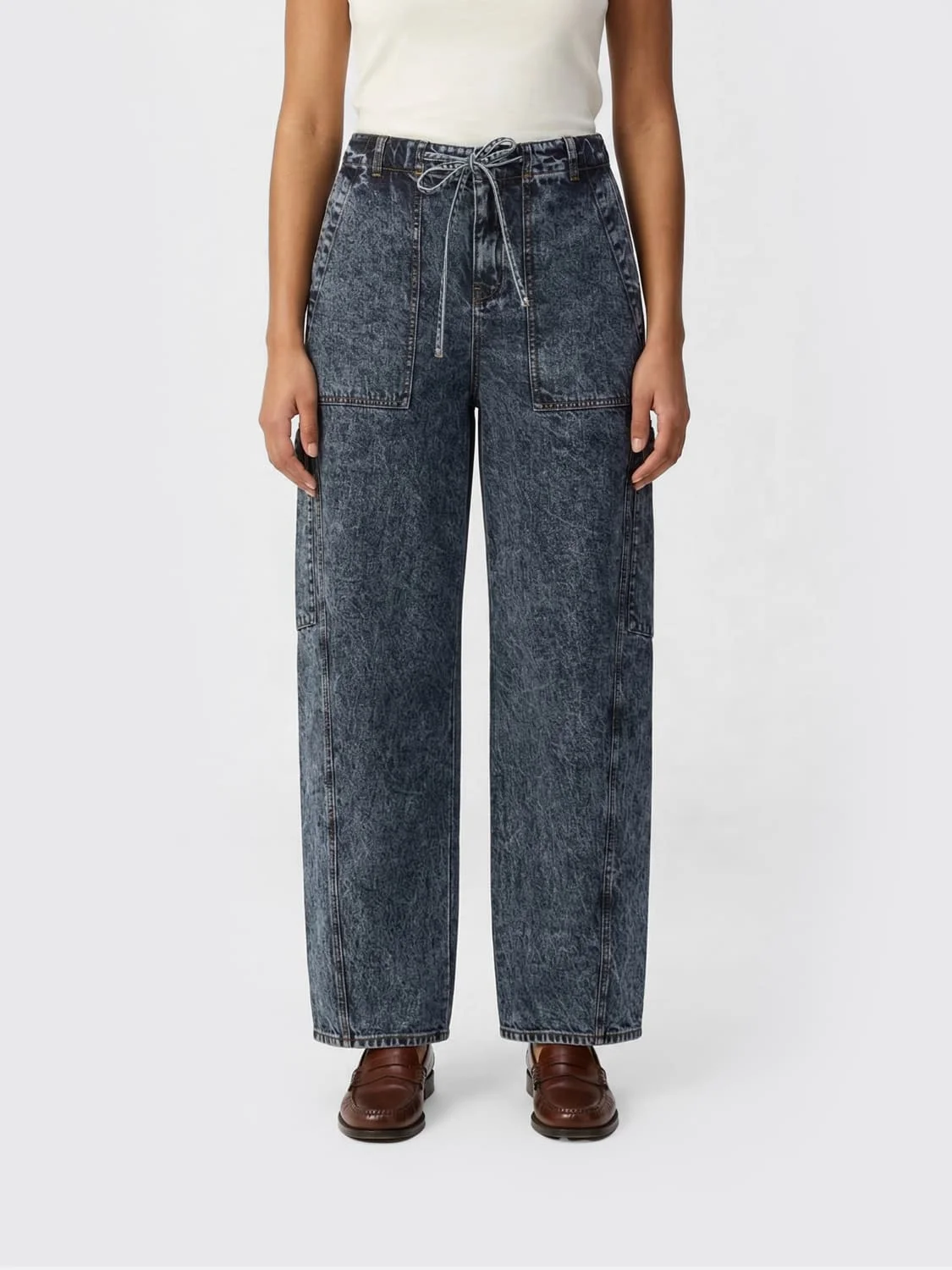 Acid-wash Mid-rise Barrel-leg Jeans
