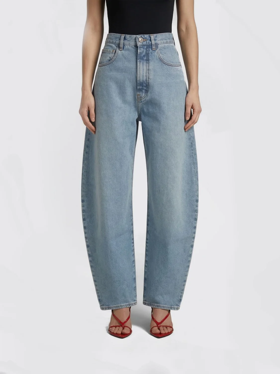 DESCRIPTION - Style: Casual, Urban-street - Pockets: 5-pocket - Waist: High waist - Bottom: With straight hemline - Closure: With button and zip - Materials: Cotton denim - Pattern: Plain-colored DETAILS AND CARE Composition not available SIZE AND FIT Sizes not available Size and fit Baggy Designer code: AA9P0176D015C A21 Giglio Code: H78613 Designer: Alaia Collection: Clothing Alaia Category: Clothing > Jeans