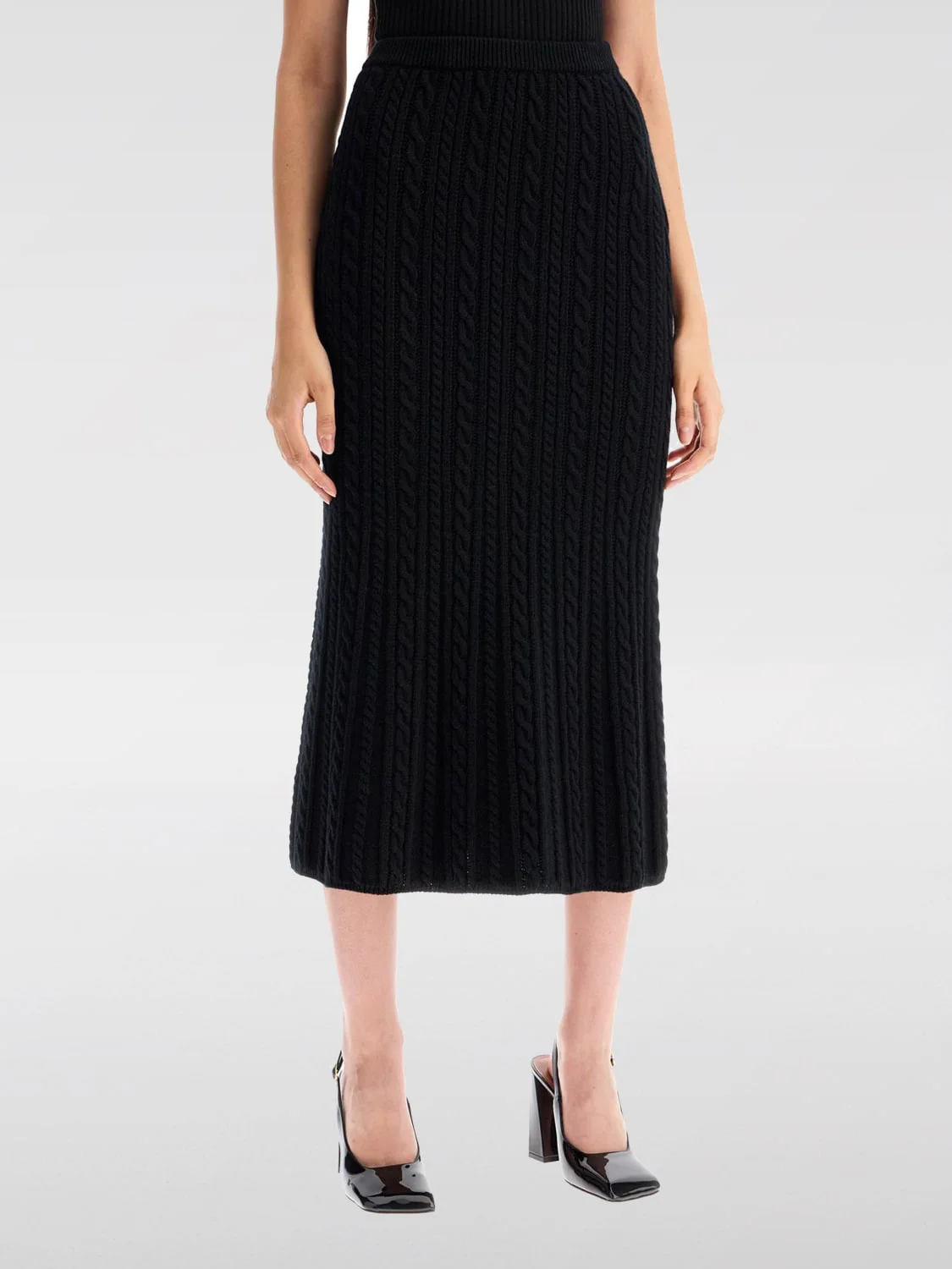 Cable-knit wool midi skirt
