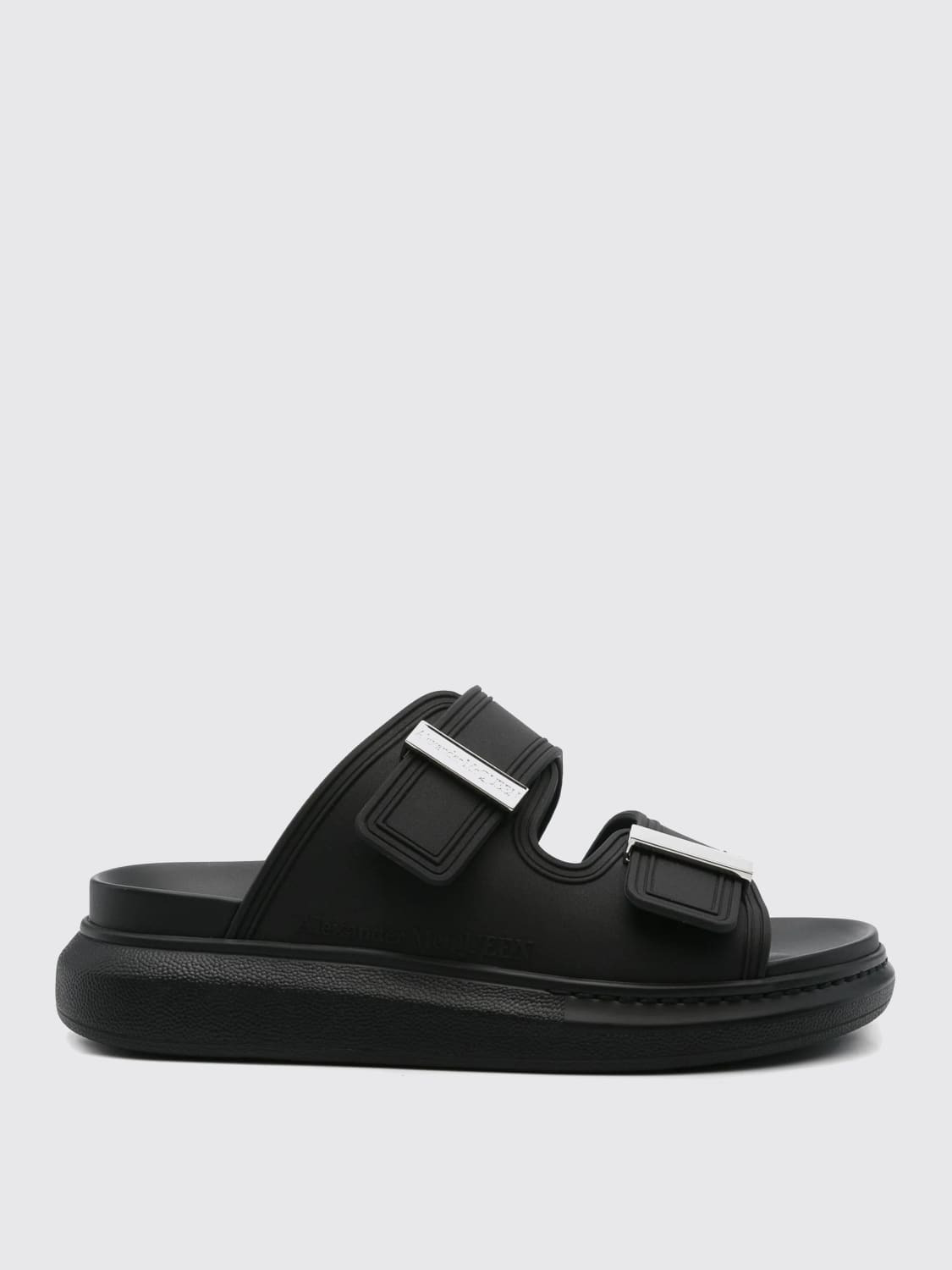 DESCRIPTION - Logo: Engraved - Model: Slippers - Closure: With double belt with buckles - Toe: Round - Sole: Rubber - Heel: Low heel - Lining: Rubber - Materials: Rubber - Pattern: Plain-colored DETAILS AND CARE Composition gomma SIZE AND FIT Sizes not available Designer code: 658063W4Z51 1081 Giglio Code: H06985 Designer: McQueen Collection: McQueen Woman Category: Shoes McQueen