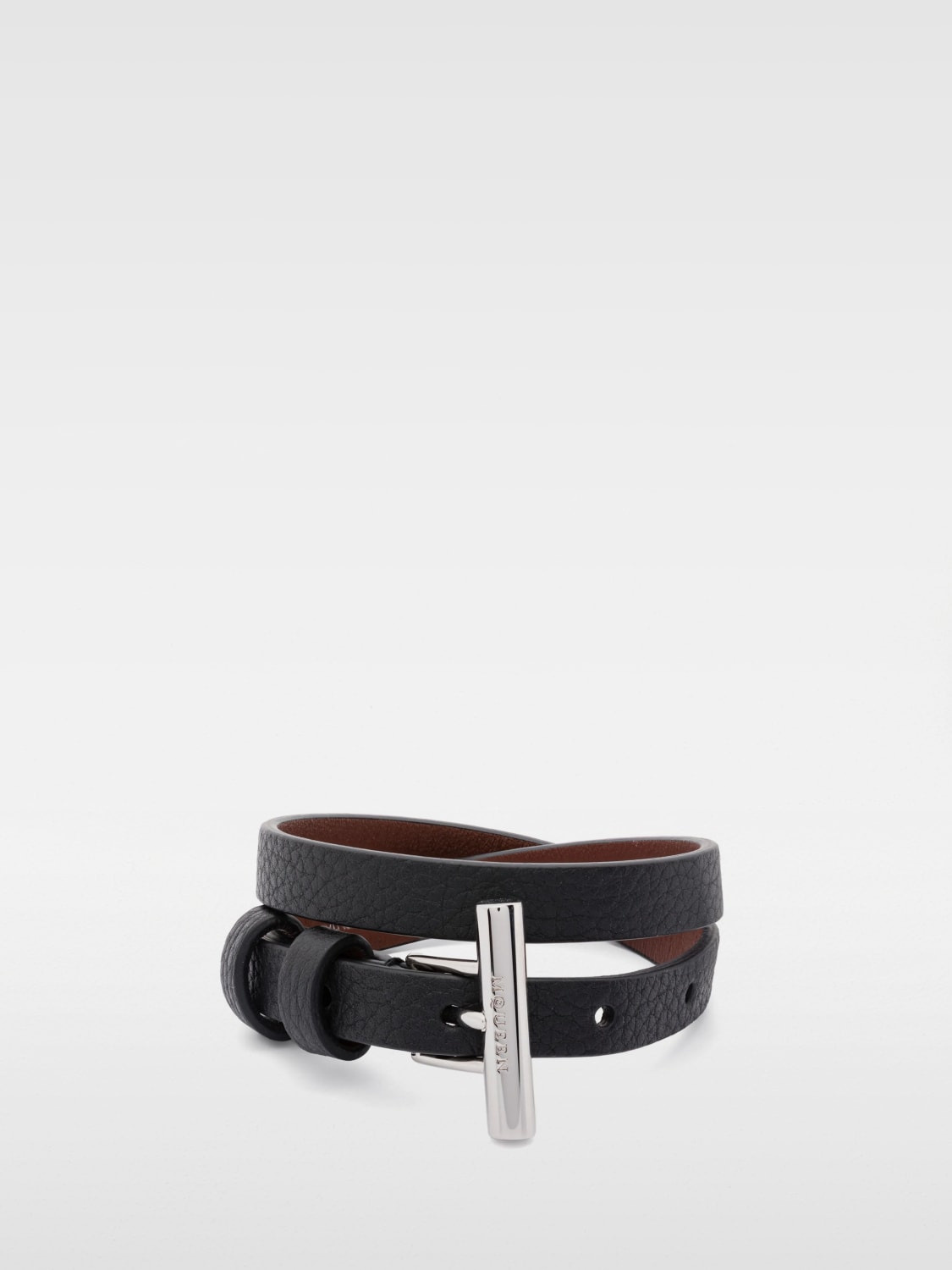 DESCRIPTION - Logo: Engraved - Model: Adjustable - Closure: With adjustable strap - Materials: Brass, Grained calfskin - Pattern: Plain-colored DETAILS AND CARE Composition 100% calfskin leather (Bos Taurus) SIZE AND FIT Sizes not available Designer code: 8134721AAUG 1000 Giglio Code: G60825 Designer: Alexander McQueen Collection: Alexander McQueen Men Category: Accessories Alexander McQueen