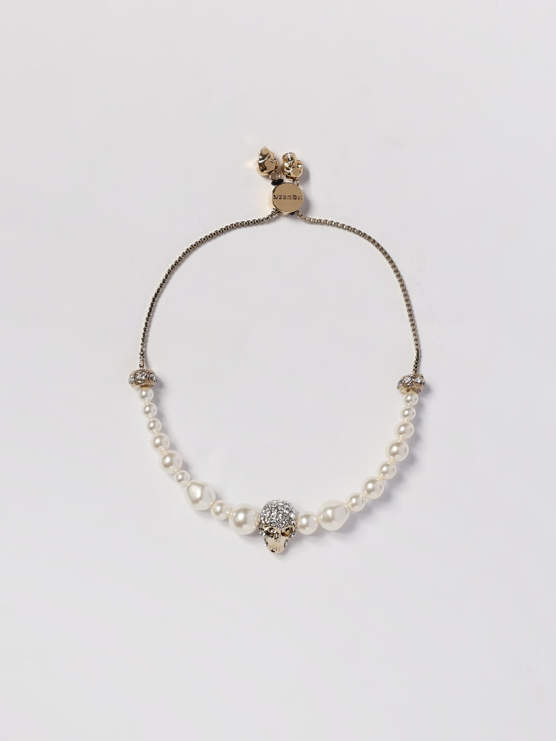 DESCRIPTION - Logo: Engraved - Details: Synthetic pearls - Model: Adjustable - Closure: With drawstrings - Materials: Synthetic pearls - Pattern: Skull DETAILS AND CARE Composition 100 AF SIZE AND FIT Sizes not available Designer code: 836479J161P 1953 Giglio Code: 433626 Designer: McQueen Collection: McQueen Woman Category: Accessories McQueen