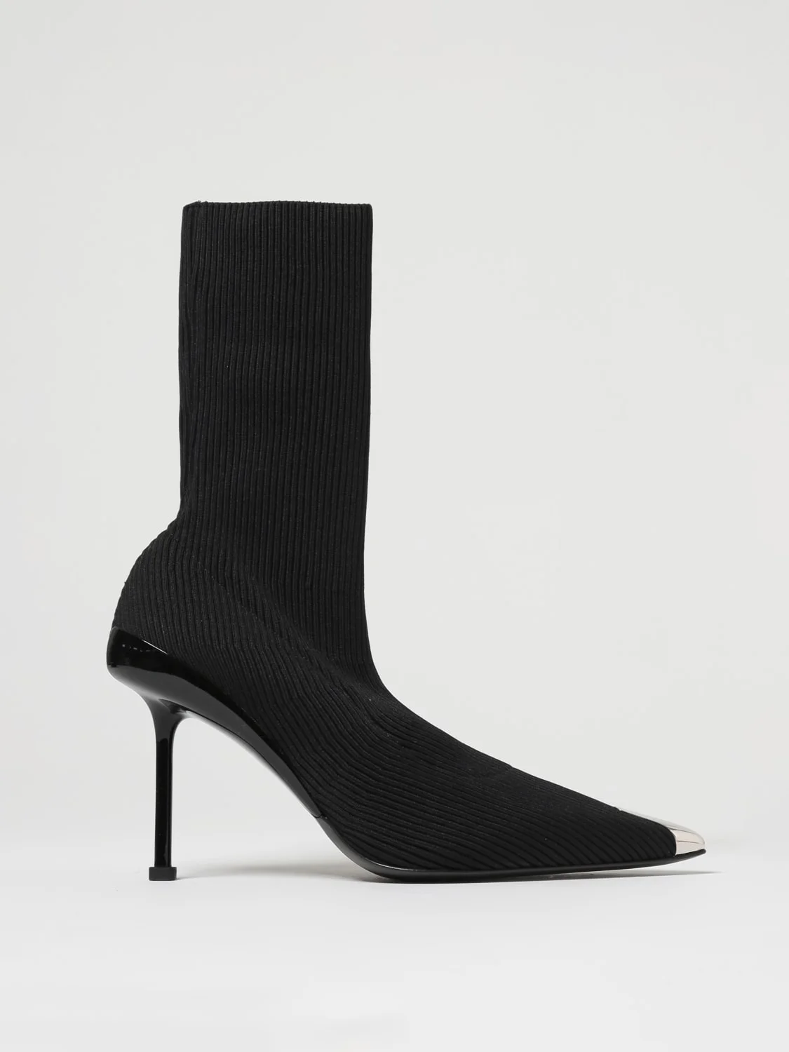 Descrizione - Sock design - Glamorous style - Slip on - Ribbed stretch shirt - Almond tip - Applied metal detail - Medium upper - Ankle with elasticated profile - Leather and mesh interior - Logo imprinted on the insole - Metal and resin stiletto heel - Real leather sole - Made in Italy DETAILS AND CARE Composition 94% pa 6%ea SIZE AND FIT Sizes Heel: 9 cm Designer code: 768095W4X81 1081 Giglio Code: E75518 Designer: McQueen Collection: McQueen Woman Category: Shoes McQueen