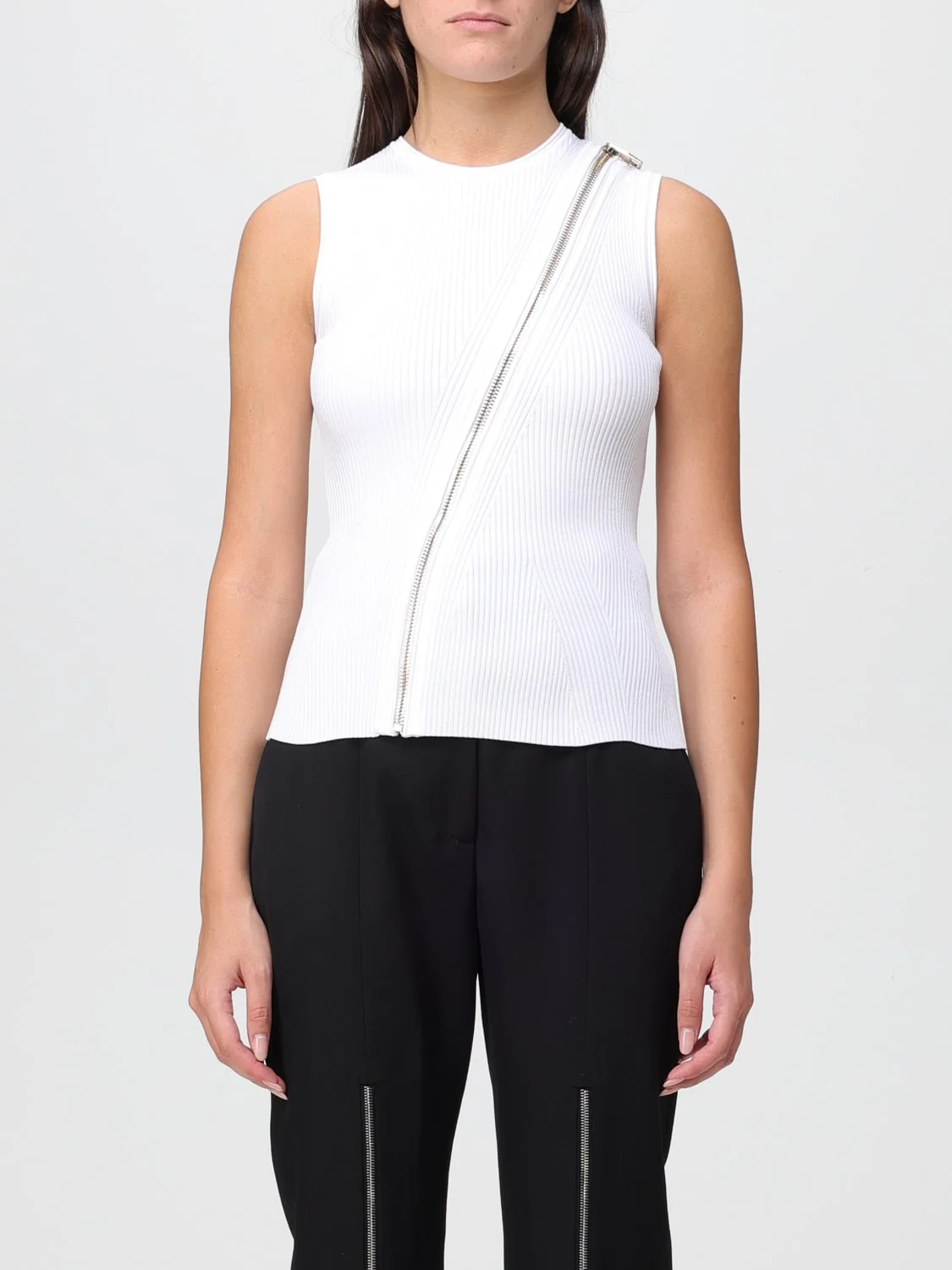 DESCRIPTION - Style: Urban-street - Details: With zip - Neckline: Crewneck - Shoulders: Regular - Closure: With interrupted zip - Bottom: With straight hemline - Sleeves: Sleeveless tops - Materials: Viscose blend - Pattern: Plain-colored DETAILS AND CARE Composition 83%VISCOSA 17%POLIESTERE SIZE AND FIT Sizes not available Size and fit Regular fit Designer code: 758512Q1A6F 9109 Giglio Code: E58821 Designer: McQueen Collection: McQueen Woman Category: Clothing McQueen