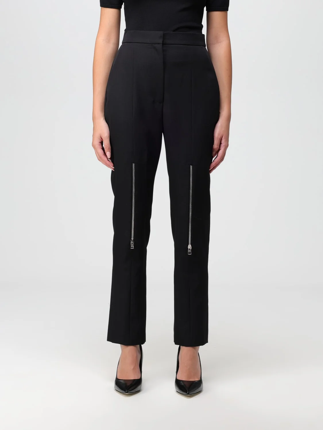 DESCRIPTION - Style: Contemporary, Urban-street - Details: With zip - Pockets: America - Bottom: With straight hemline - Closure: With button and zip - Waist: High waist - Materials: Wool - Pattern: Plain-colored DETAILS AND CARE Composition 100%WOOL SIZE AND FIT Sizes not available Size and fit Slim fit Designer code: 756388QJAAC 1000 Giglio Code: E61899 Designer: McQueen Collection: McQueen Woman Category: Clothing McQueen