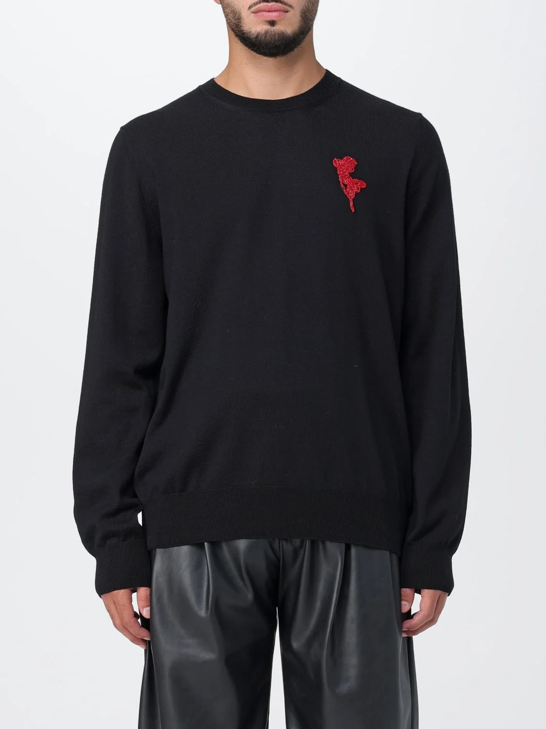 DESCRIPTION - Style: Casual - Details: With embroidery - Model: Crewneck - Neckline: Crewneck - Shoulders: Regular - Sleeves: Long - Bottom: With straight hemline - Materials: Wool - Pattern: Embroidery, Plain-colored DETAILS AND CARE Composition 100%WOOL SIZE AND FIT Sizes not available Size and fit Regular fit Designer code: 760755Q1XIF 1058 Giglio Code: E68643 Designer: McQueen Collection: McQueen Men Category: Clothing McQueen