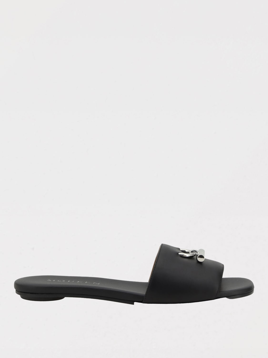 DESCRIPTION - Logo: Engraved - Lining: With logo - Model: Slip on - Toe: Round - Sole: Leather and rubber - Heel: Low heel - Materials: Smooth calfskin - Pattern: Plain-colored DETAILS AND CARE Composition L1 100% BOS TAURUS O:DE SIZE AND FIT Sizes not available Designer code: 817471WIACT 1064 Giglio Code: 424617 Designer: McQueen Collection: McQueen Woman Category: Shoes McQueen
