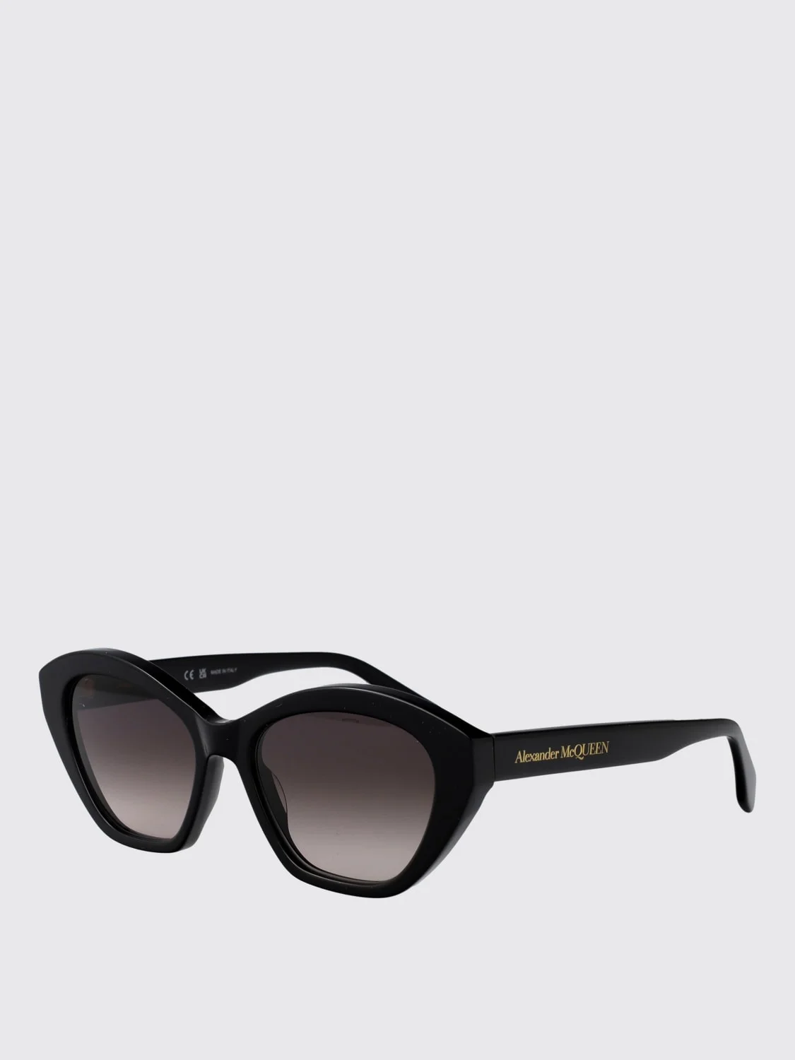 DESCRIPTION - Logo: Contrasting, Lettering - Model: Cat eye - Shape: Flared - Measurements: Bridge: 17, Lens width: 54 mm, Temples: 145 - Components: Faded lenses, UVA/UVB lenses - Materials: Acetate - Pattern: Plain-colored DETAILS AND CARE Composition ACETATE SIZE AND FIT Sizes not available Designer code: AM0355S 001 Giglio Code: G91732 Designer: McQueen Collection: McQueen Woman Category: Accessories McQueen