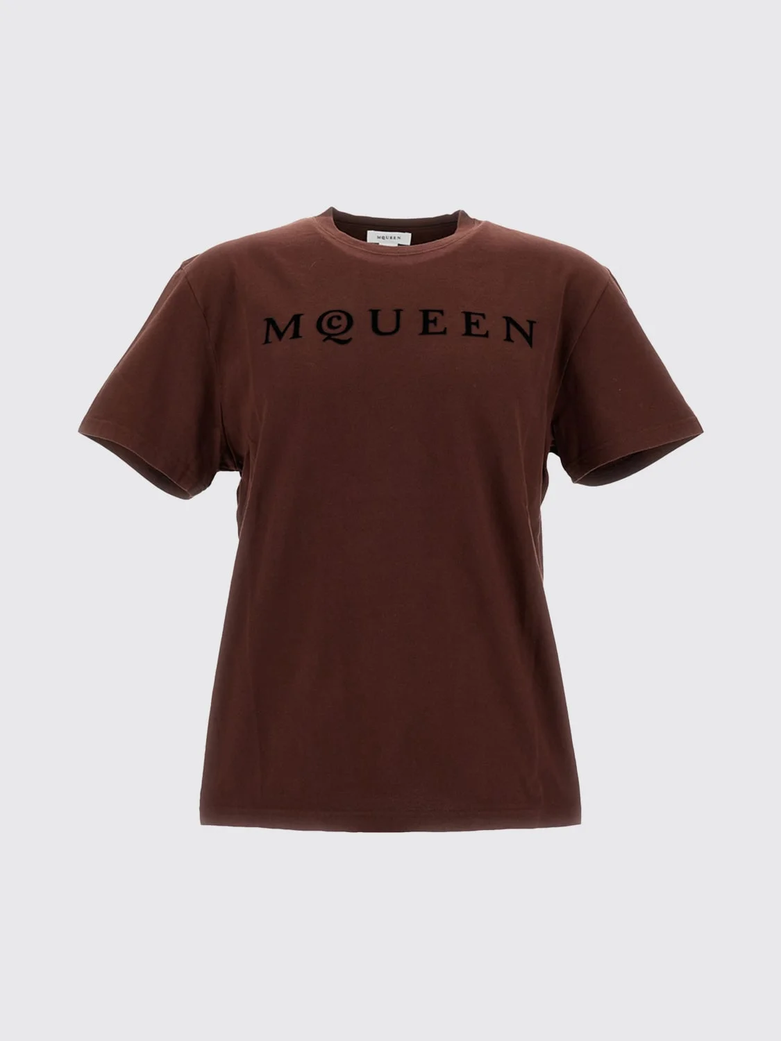 DESCRIPTION - Style: Contemporary - Logo: Tone-on-tone - Model: Crewneck - Neckline: Crewneck - Shoulders: Regular - Sleeves: Short - Bottom: With straight hemline - Materials: Cotton - Pattern: Plain-colored DETAILS AND CARE Composition 100%CO SIZE AND FIT Sizes not available Size and fit Regular fit Designer code: 847750QTAD5 0642 Giglio Code: H41447 Designer: McQueen Collection: Clothing McQueen Category: Clothing > T-shirt