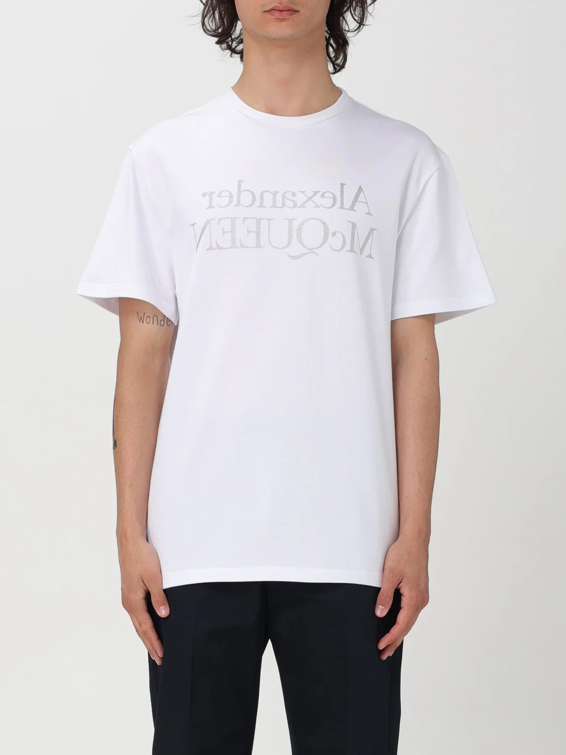 DESCRIPTION Editorial Notes T-shirt men Alexander McQueen - Style: Sporty, Urban-street - Logo: Print - Neckline: Crewneck - Sleeves: Short - Bottom: With straight hemline - Occasion: Morning - Materials: Cotton DETAILS AND CARE Composition co SIZE AND FIT Sizes not available Size and fit Regular fit Designer code: 781977QTAAZ 0934 Giglio Code: 412604 Designer: McQueen Collection: McQueen Men Category: Clothing McQueen