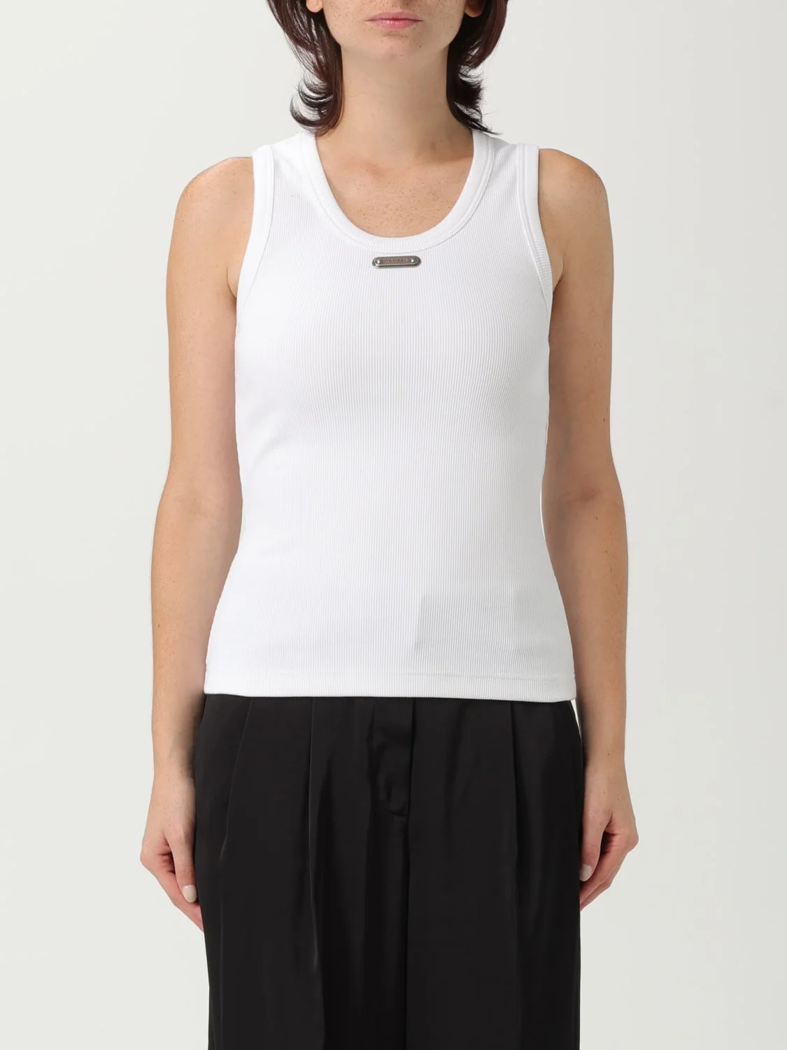 DESCRIPTION - Style: Minimal - Logo: Contrasting - Neckline: U neckline - Shoulders: Regular - Sleeves: Sleeveless - Bottom: With straight hemline - Materials: Cotton - Pattern: Plain-colored DETAILS AND CARE Composition not available SIZE AND FIT Sizes not available Size and fit Regular fit Designer code: 839507QLAER 9000 Giglio Code: H20726 Designer: McQueen Collection: McQueen Woman Category: Clothing McQueen