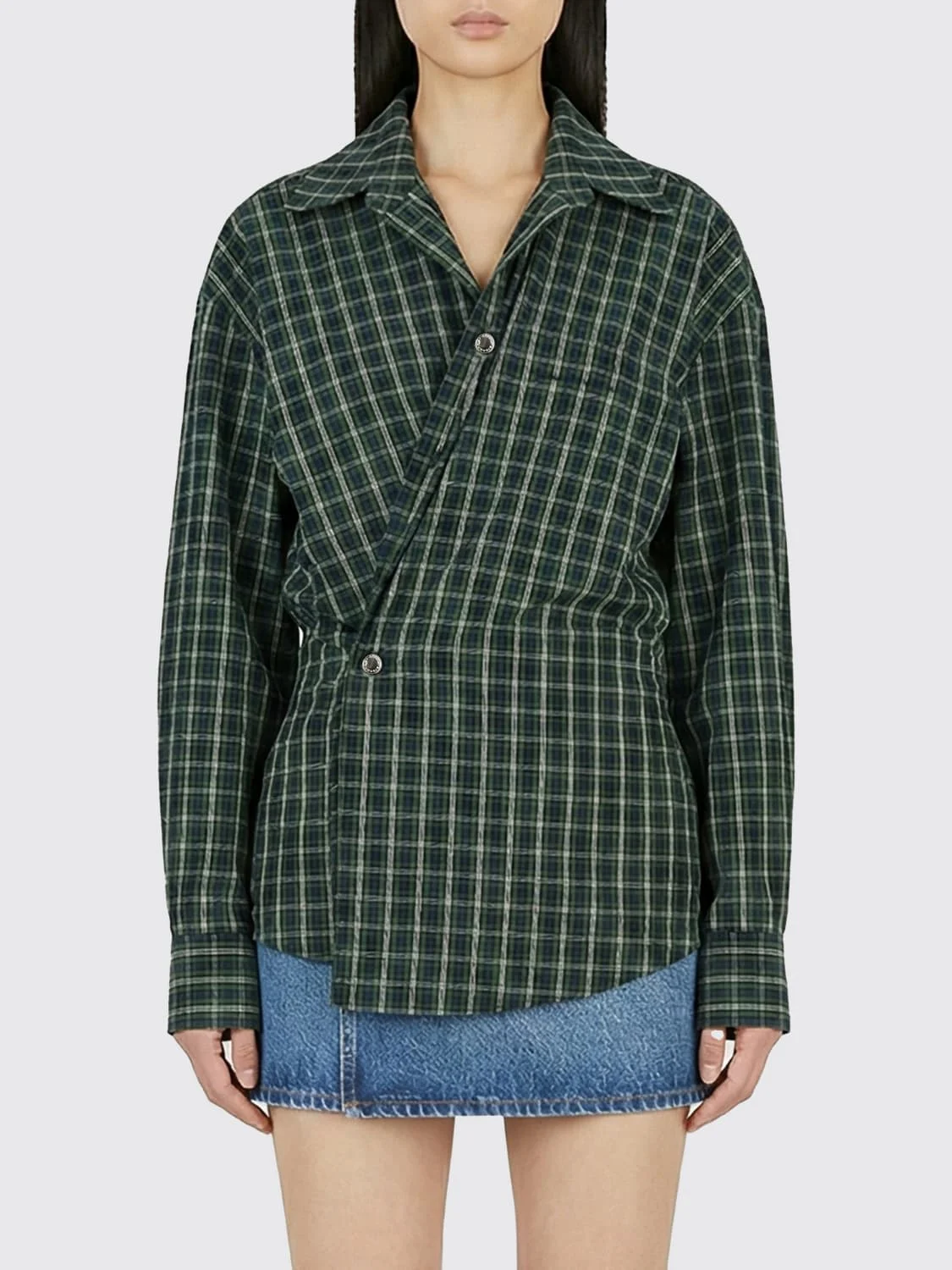 DESCRIPTION - Style: Casual - Model: Chemisier - Neck: Classic - Shoulders: Relaxed - Cuffs: 1-button - Bottom: With straight hemline - Closure: 1-button - Length: Mini dresses - Occasion: Morning dresses - Sleeves: Long sleeve dresses - Materials: Stone-wash denim - Pattern: Check DETAILS AND CARE Composition 100% cotton SIZE AND FIT Sizes not available Size and fit Regular fit Designer code: 1WC1266937 961E Giglio Code: H96916 Designer: Alexander Wang Collection: Alexander Wang Woman Category: Clothing Alexander Wang