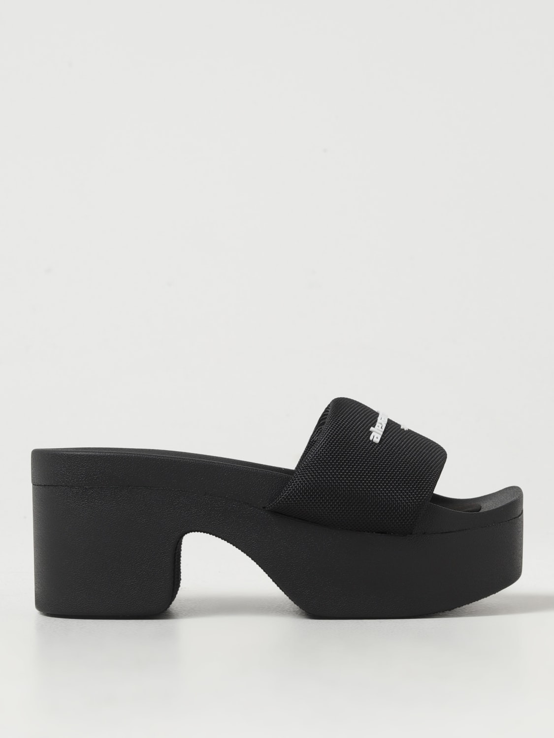 DESCRIPTION - Model: Slip on - Toe: Open - Sole: Rubber - Heel: Medium heel - Lining: Neoprene, Rubber, With logo - Logo: With logo - Materials: Mesh , Rubber - Pattern: Plain-colored DETAILS AND CARE Composition NYLON SIZE AND FIT Sizes Heel: 7,5 cm Designer code: 30322S020 001 Giglio Code: F81298 Designer: Alexander Wang Collection: Alexander Wang Woman Category: Shoes Alexander Wang