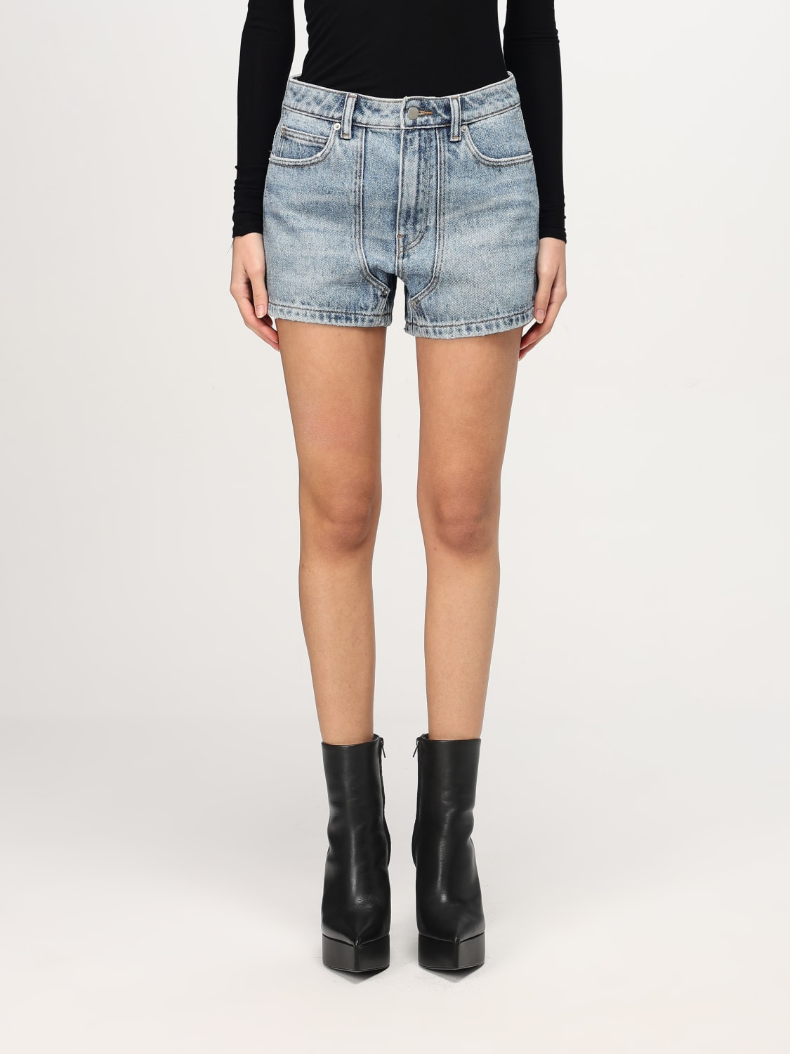 DESCRIPTION - Style: Urban-street - Length: Mini - Pockets: 5-pocket - Waist: Medium - Logo: With logo - Closure: 1-button - Materials: Bleached denim - Pattern: Plain-colored DETAILS AND CARE Composition 100% cotton SIZE AND FIT Sizes not available Size and fit Slim fit Designer code: 1WC1254609 407A Giglio Code: G40989 Designer: Alexander Wang Collection: Alexander Wang Woman Category: Clothing Alexander Wang