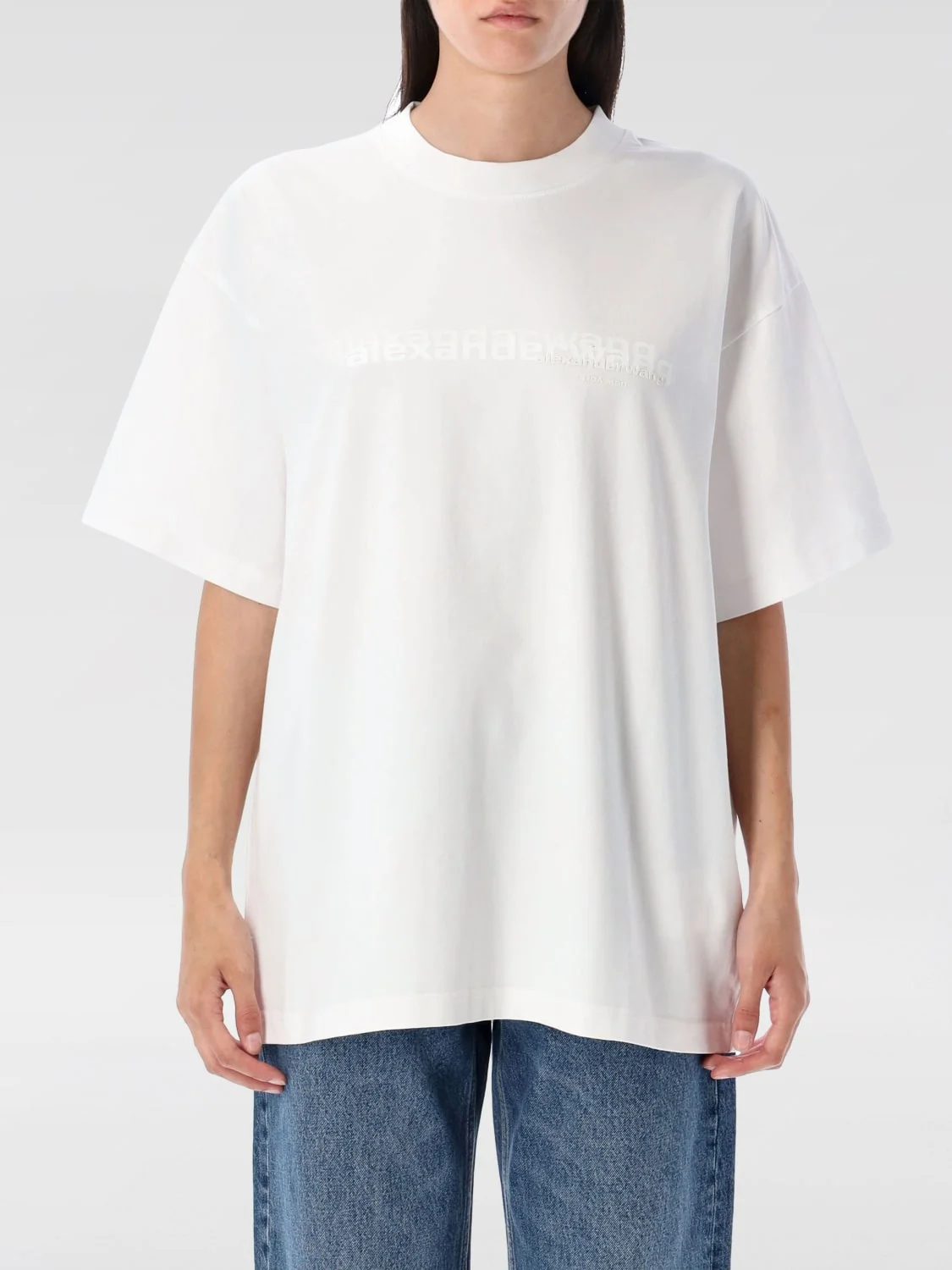 DESCRIPTION - Style: Underground - Logo: Tone-on-tone - Model: Crewneck - Length: Long - Neckline: Crewneck - Shoulders: Relaxed - Sleeves: Short - Bottom: With straight hemline - Occasion: Morning - Materials: Cotton - Pattern: Logo DETAILS AND CARE Composition GENERAL COTTON 100 - SIZE AND FIT Sizes not available Size and fit Oversize Designer code: UCC3251847 120 Giglio Code: H20035 Designer: Alexander Wang Collection: Alexander Wang Woman Category: Clothing Alexander Wang