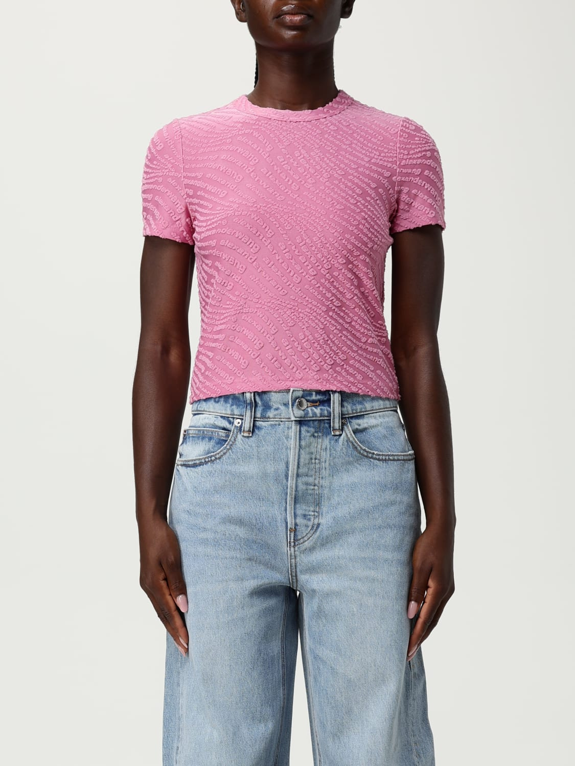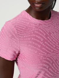 DESCRIPTION - Style: Urban-street - Logo: Tone-on-tone - Neckline: Crewneck - Shoulders: Regular - Bottom: With straight hemline - Sleeves: Short sleeve tops - Materials: Jersey - Pattern: Logo DETAILS AND CARE Composition 97% POLYESTER, 3% SPANDEX SIZE AND FIT Sizes not available Size and fit Slim fit Designer code: 4CC3251097 957 Giglio Code: H23593 Designer: Alexander Wang Collection: Alexander Wang Woman Category: Clothing Alexander Wang
