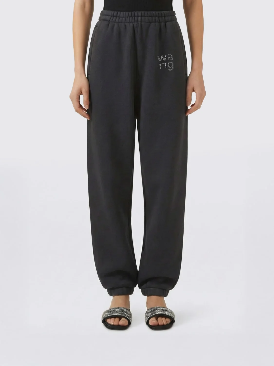 DESCRIPTION - Style: Casual, Sporty - Logo: Contrasting, Rhinestone - Pockets: America , Back slit pocket - Waist: High waist - Bottom: Stretch, With straight hemline - Materials: Cotton blend - Pattern: Logo, Plain-colored DETAILS AND CARE Composition Cotton | 75% COTTON 25% POLYESTER SIZE AND FIT Sizes not available Size and fit Regular fit Designer code: 4CC1264997 011 Giglio Code: H86884 Designer: T by Alexander Wang Collection: T by Alexander Wang Woman Category: Clothing T by Alexander Wang