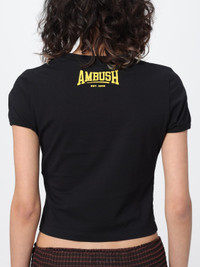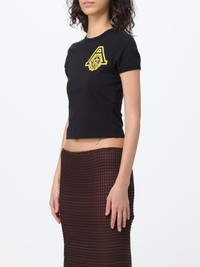 DESCRIPTION - Logo: Contrasting - Neckline: Crewneck - Shoulders: Regular - Sleeves: Short - Materials: Stretch cotton DETAILS AND CARE Composition FABRIC 100% COTTON SIZE AND FIT Sizes not available Size and fit Cropped fita Designer code: BWAA049S24JER001 1018 Giglio Code: F24171 Designer: Ambush Collection: Ambush Woman Category: Clothing Ambush
