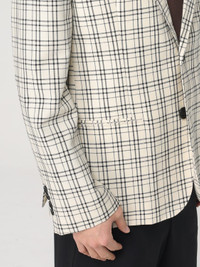BEIGE CHECKED WOOL SEMI-LINED JACKET