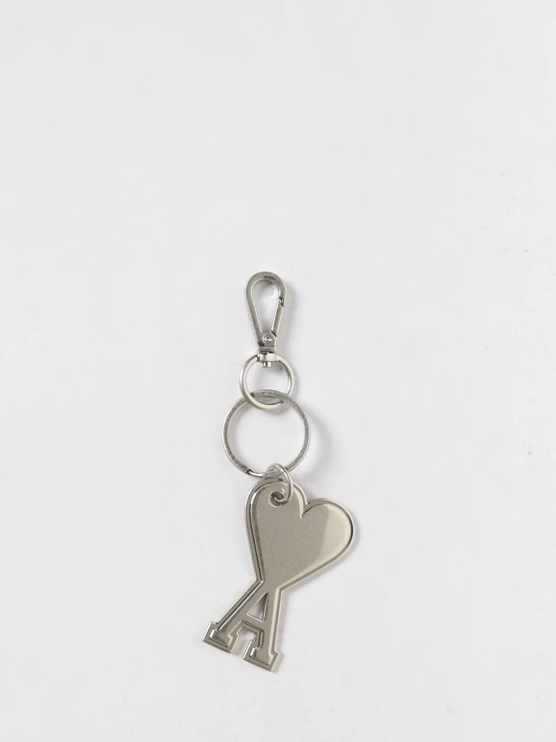 DESCRIPTION - Style: Casual - Logo: Engraved - Shape: Asymmetric - General: Gift idea - Details: With metallic ring, With spring snap hook - Occasion: Morning - Materials: Metal - Pattern: Logo DETAILS AND CARE Composition not available SIZE AND FIT Sizes not available Designer code: UKR906369 905 Giglio Code: H91975 Designer: Ami Paris Collection: Accessories Ami Paris Category: Accessories > Keyring