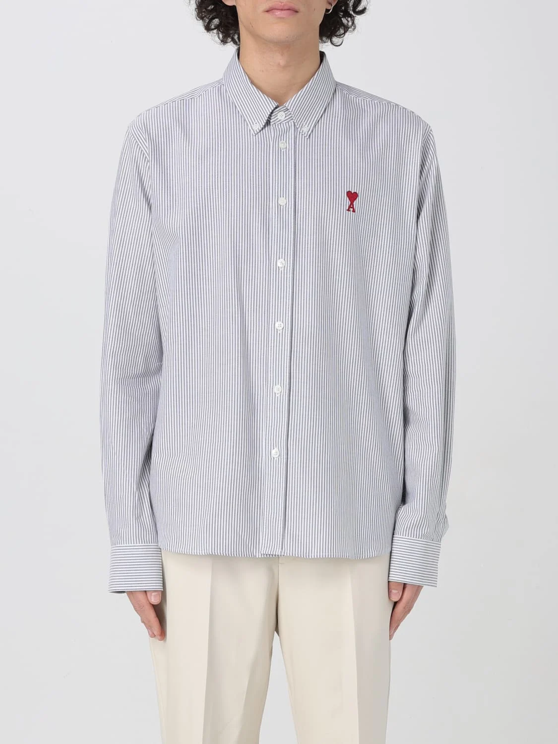 DESCRIPTION - Style: Classic - Logo: Embroidered - Neck: Button-down - Shoulders: Regular - Closure: With buttons - Bottom: With curved hemline - Sleeves: Long sleeve shirts - Materials: Cotton - Pattern: Stripes DETAILS AND CARE Composition 100% cotton SIZE AND FIT Sizes not available Size and fit Regular fit Designer code: BFUSH063CO0087 039 Giglio Code: G67142 Designer: Ami Paris Collection: Ami Paris Men Category: Clothing Ami Paris