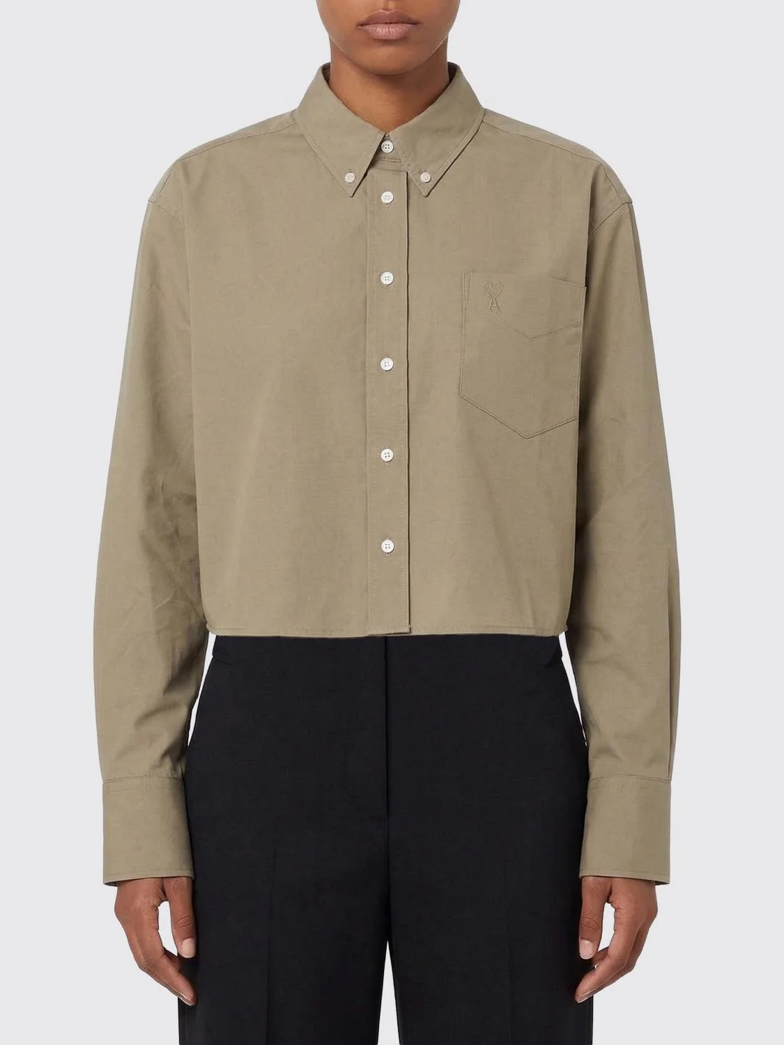 BEIGE COTTON CROPPED EMBOSSED AMI DE COEUR SHIRT