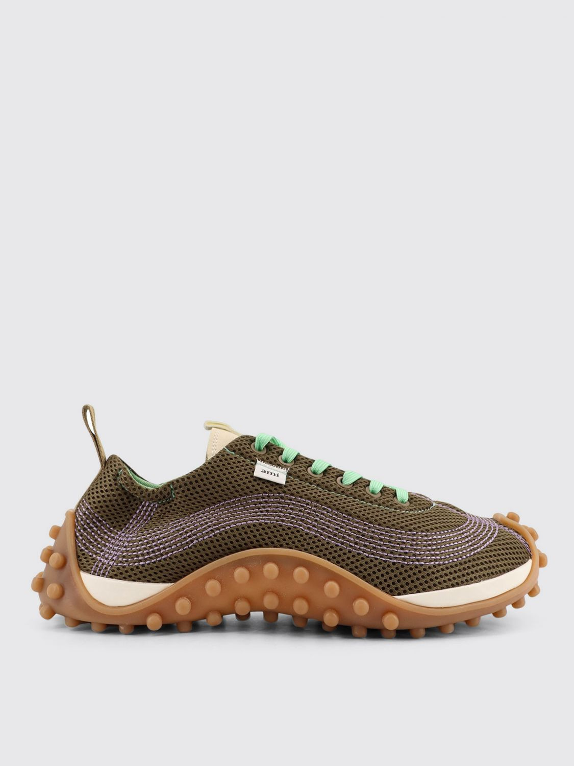 DESCRIPTION - Details: With back tab - Lining: With logo - Model: Lace up - Toe: Round - Ankle: Padded - Sole: Rubber - Logo: With logo - Materials: Mesh - Pattern: undefined DETAILS AND CARE Composition 100% POLYESTER SIZE AND FIT Sizes not available Designer code: USN505AW0003 298 Giglio Code: H42483 Designer: Ami Paris Collection: Ami Paris Men Category: Shoes Ami Paris