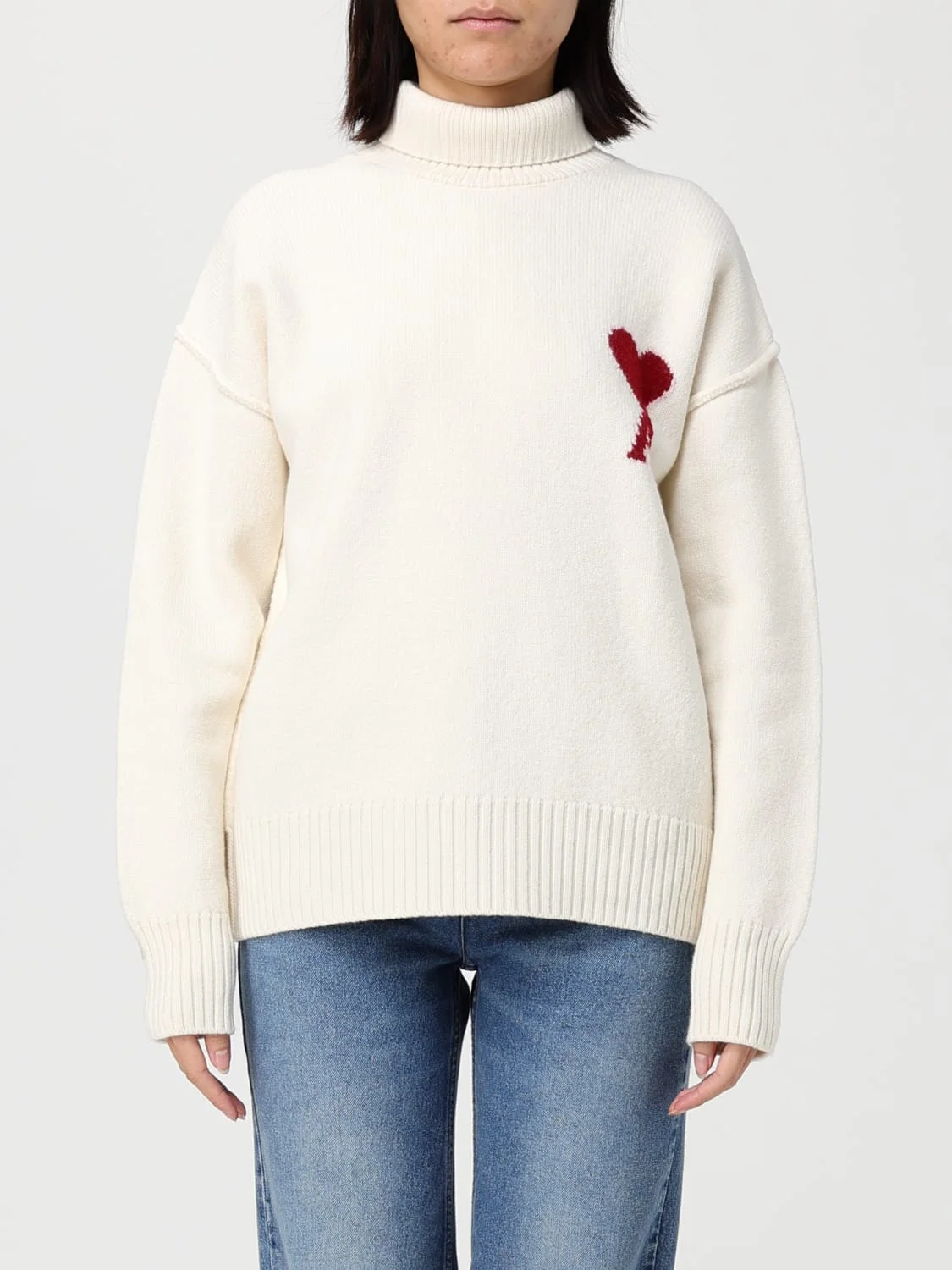 Off-White Contrasted Ami de Coeur Funnel Neck Sweater