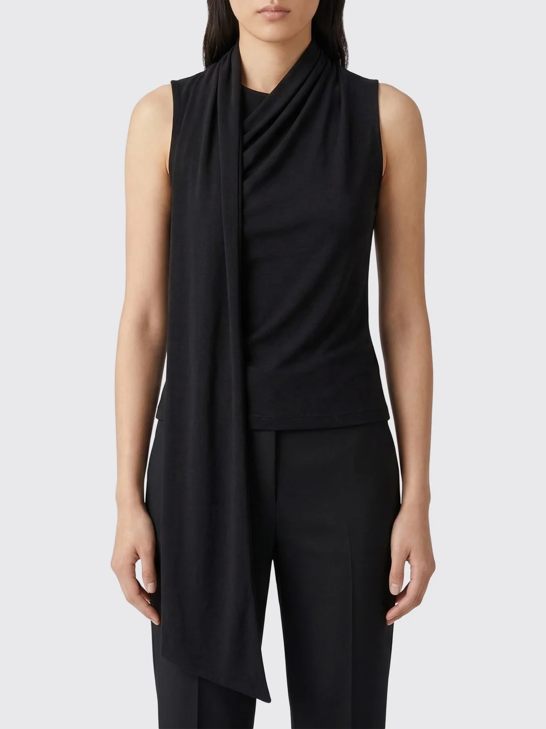 BLACK JERSEY SLEEVELESS LAVALLIERE TOP