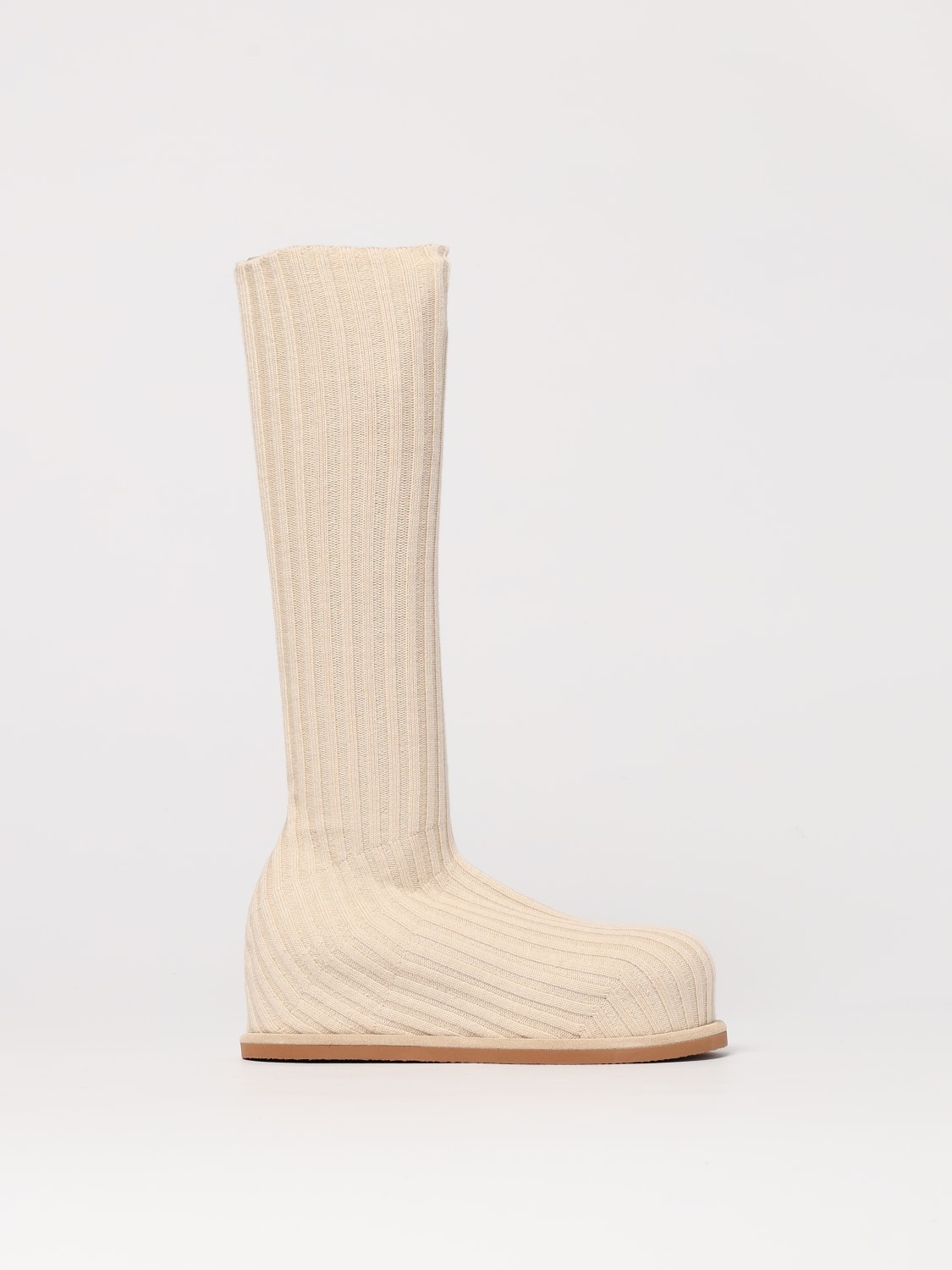 DESCRIPTION - Lining: Leather, With logo - Model: Sock, Ribbed, Knit - Toe: Round - Shaft: Over-the-knee - Sole: Rubber , Platform - Heel: Low - Materials: Wool - Pattern: Plain-colored DETAILS AND CARE Composition 90% Wool 10% Elastane SIZE AND FIT Sizes not available Designer code: VENEDASTRETCHBOOT BEIGE Giglio Code: G55554 Designer: Amina Muaddi Collection: Amina Muaddi Woman Category: Shoes Amina Muaddi
