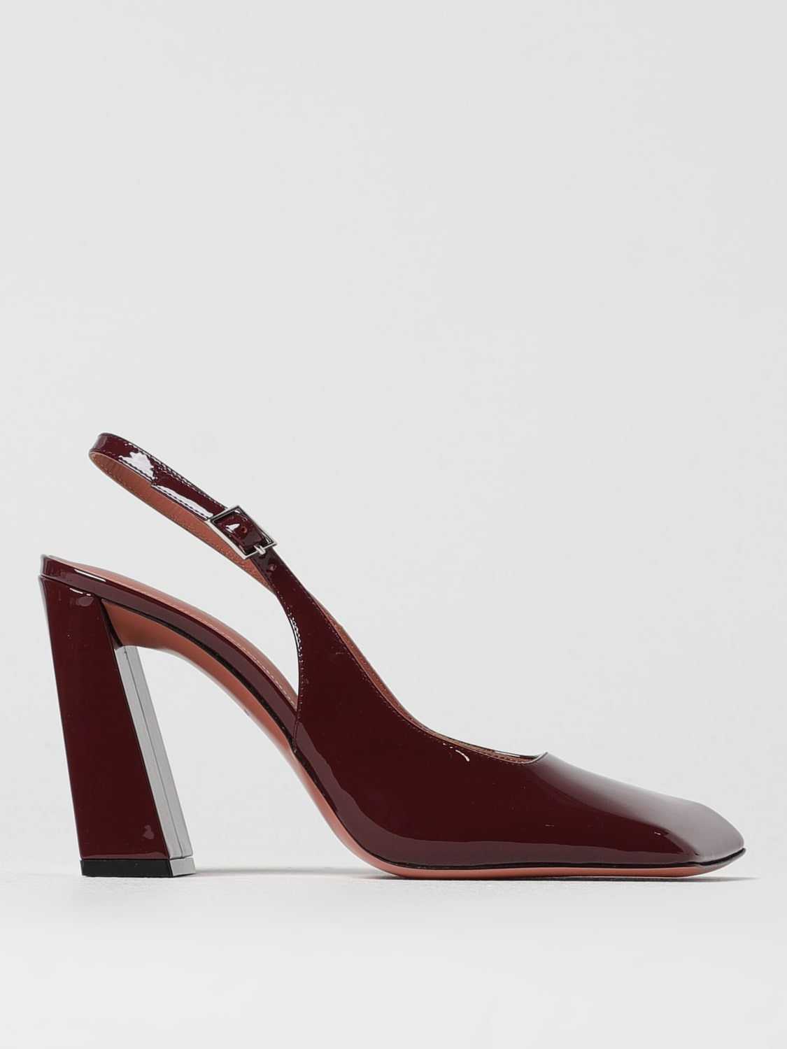 DESCRIPTION - Lining: With imprinted logo - Model: Slingback - Toe: Flared - Sole: Leather - Heel: With adjustable strap, undefined - Materials: Patent leather - Pattern: Plain-colored DETAILS AND CARE Composition 100% Calfskin SIZE AND FIT Sizes Heel: 9,5 cm Designer code: CHARLOTTESLING PATENTWINE Giglio Code: G55542 Designer: Amina Muaddi Collection: Amina Muaddi Woman Category: Shoes Amina Muaddi