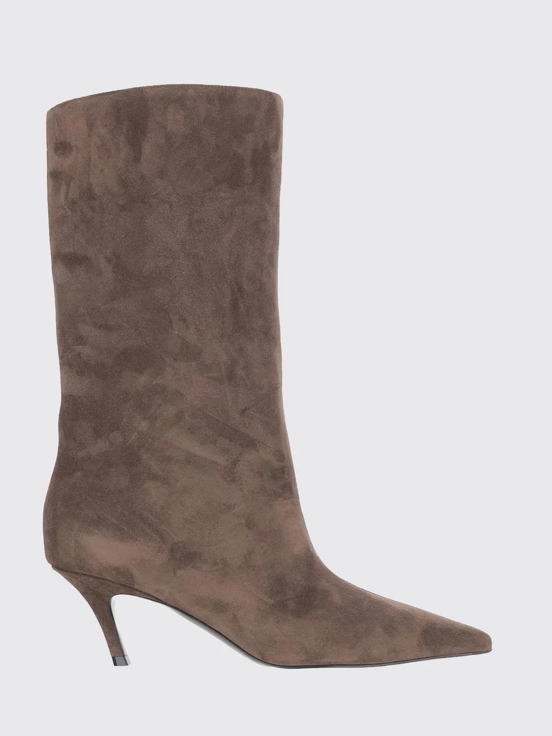 DESCRIPTION - Style: Minimal - Lining: Leather, With logo - Model: Slip on - Toe: Almond - Shaft: Calf-length - Sole: Leather - Ankle: Stretch - Occasion: Morning - Heel: Tacco medio a stiletto - Materials: Smooth calfskin - Pattern: Plain-colored DETAILS AND CARE Composition 100% pelle SIZE AND FIT Sizes Heel: 6 cm Designer code: FIONABOOT COFFEE Giglio Code: H72717 Designer: Amina Muaddi Collection: Amina Muaddi Woman Category: Shoes Amina Muaddi