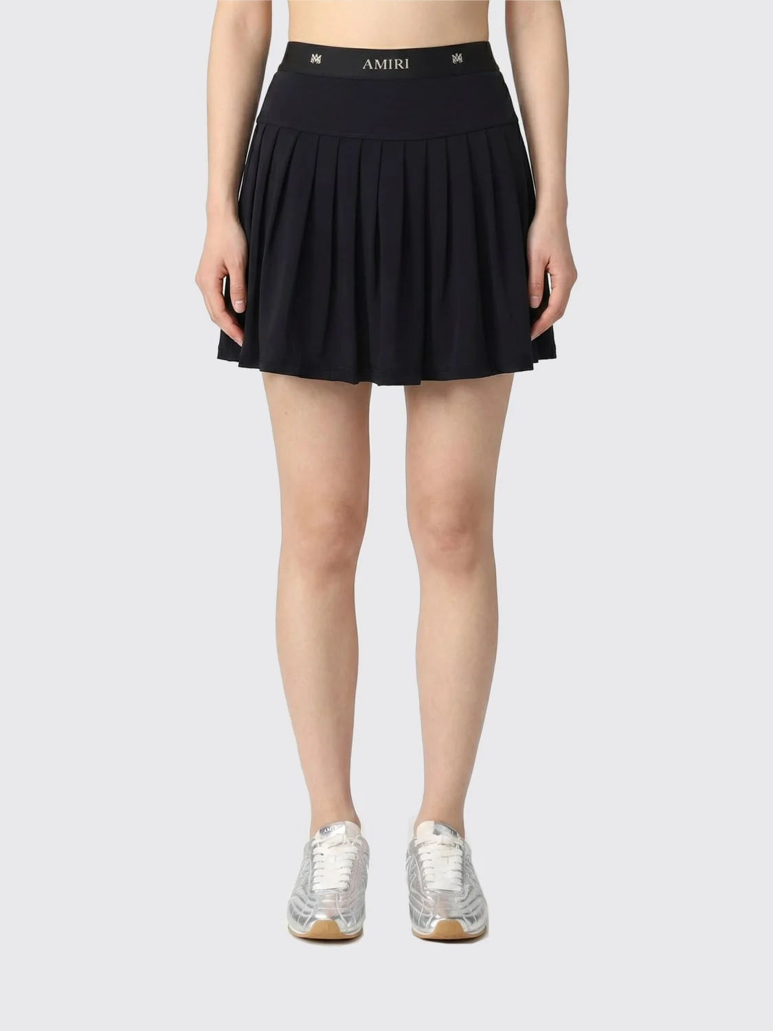 DESCRIPTION - Style: College, Sporty - Logo: Contrasting - Model: Pleated - Closure: Absent - Waist: High , With stretch wristband with logo - Bottom: With straight hemline - Length: Mini skirt - Materials: Nylon - Pattern: Plain-colored DETAILS AND CARE Composition 73% polyamide, 2%elastane, 69% polyamide, 13% SIZE AND FIT Sizes not available Size and fit Regular fit Designer code: AMBOAC1006 BLACK Giglio Code: H96101 Designer: Amiri Collection: Clothing Amiri Category: Clothing > Skirt