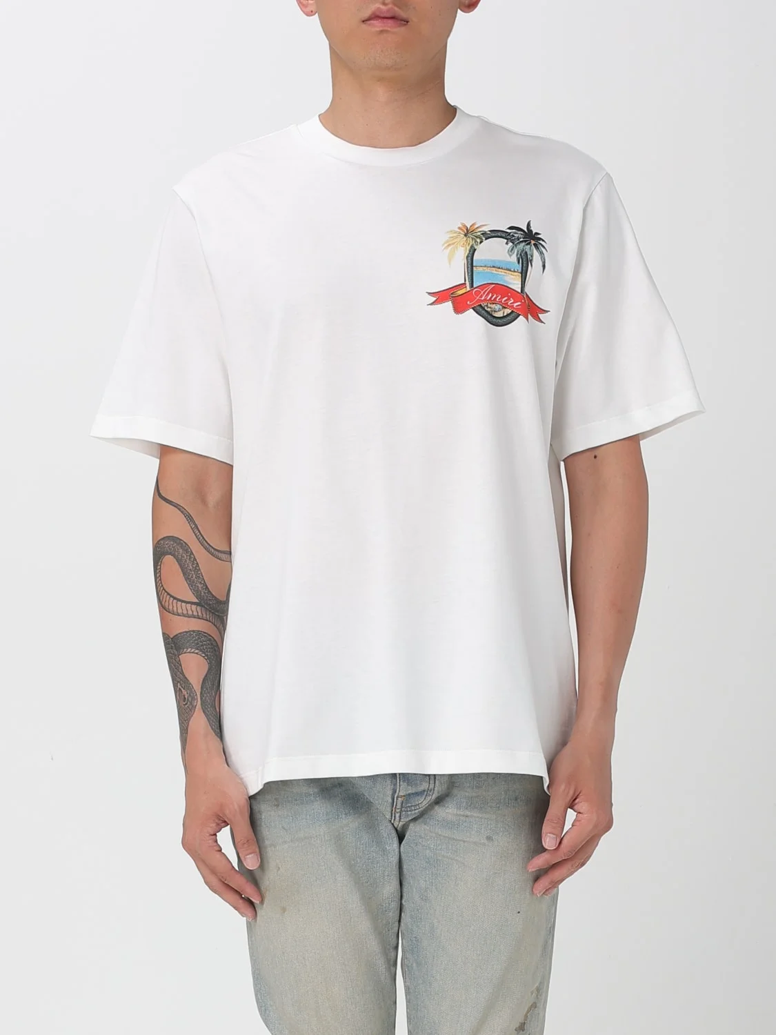 DESCRIPTION - Style: Urban-street - Logo: Contrasting - Neckline: Crewneck - Shoulders: Regular - Sleeves: Short - Bottom: With straight hemline - Materials: Cotton - Pattern: Graphic DETAILS AND CARE Composition not available SIZE AND FIT Sizes not available Size and fit Regular fit Designer code: AMJYTE1217 IVORY Giglio Code: H14462 Designer: Amiri Collection: Amiri Men Category: Clothing Amiri