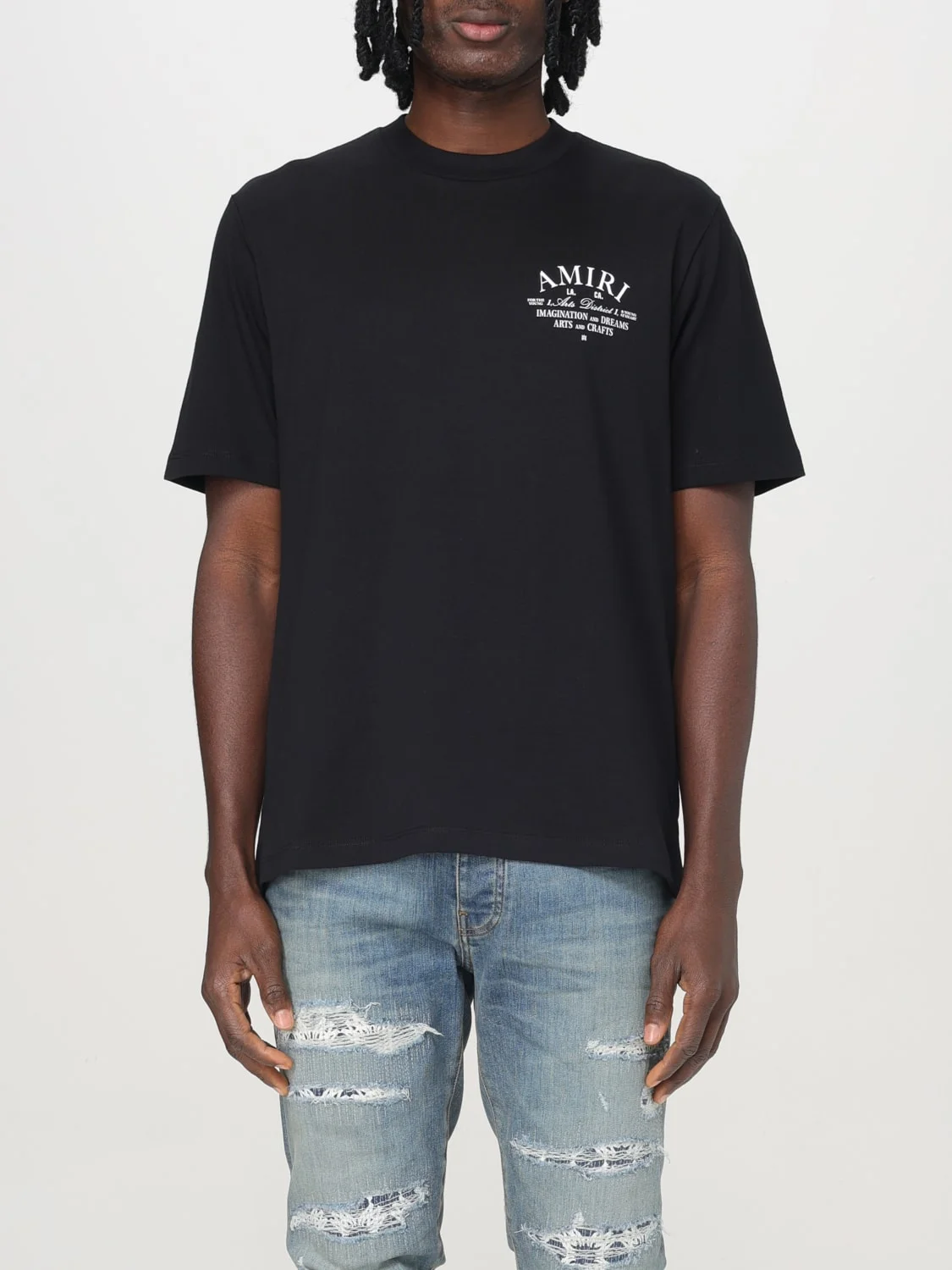 DESCRIPTION - Logo: Contrasting - Neckline: Crewneck - Shoulders: Relaxed - Sleeves: Short - Bottom: With straight hemline - Materials: Cotton - Pattern: Logo DETAILS AND CARE Composition _100% CO SIZE AND FIT Sizes not available Size and fit Regular fit Designer code: AMJYTE1071 001 Giglio Code: G43250 Designer: Amiri Collection: Amiri Men Category: Clothing Amiri