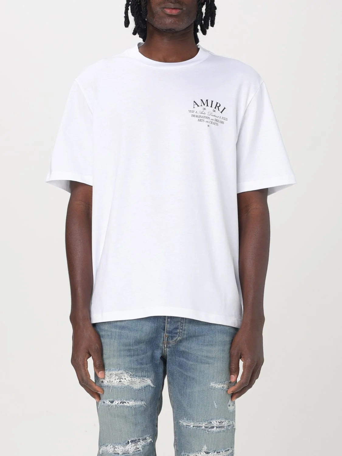 DESCRIPTION - Logo: Contrasting - Neckline: Crewneck - Shoulders: Relaxed - Sleeves: Short - Bottom: With straight hemline - Materials: Cotton - Pattern: Logo DETAILS AND CARE Composition _100% CO SIZE AND FIT Sizes not available Size and fit Regular fit Designer code: AMJYTE1071 100 Giglio Code: G43250 Designer: Amiri Collection: Amiri Men Category: Clothing Amiri