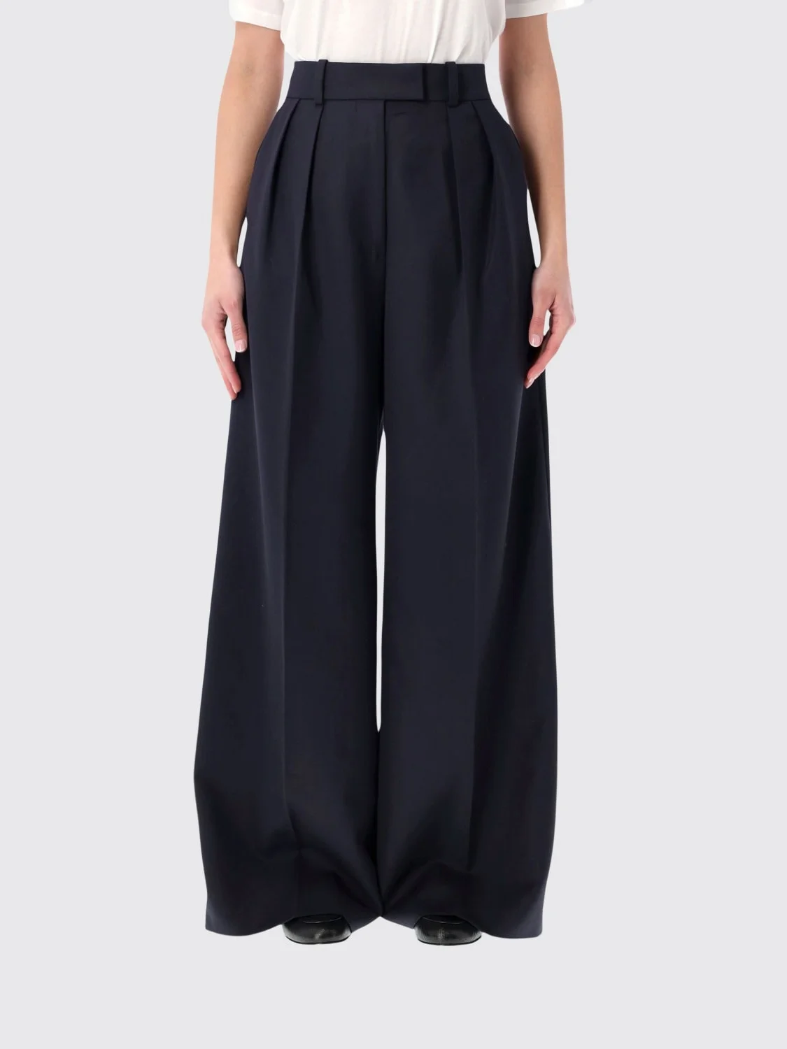 DESCRIPTION - Style: Classic - Closure: With button and zip - Pockets: America , Back slit pocket - Waist: High waist - Bottom: With straight hemline - Materials: Stretch cotton - Pattern: Plain-colored DETAILS AND CARE Composition 52% polyester 48% wool SIZE AND FIT Sizes not available Size and fit Narrow leg Designer code: A0310389 NYA34 Giglio Code: H94155 Designer: Anine Bing Collection: Anine Bing Woman Category: Clothing Anine Bing